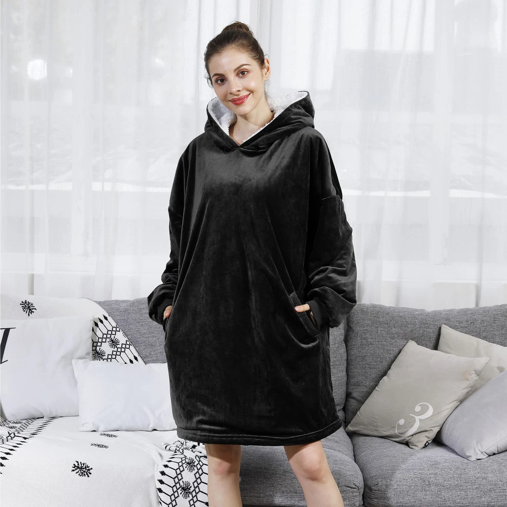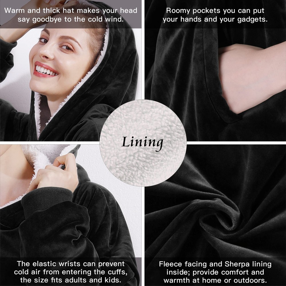 [Autumn Winter Essentials]- Are you still afraid to go out because of the cold? With this blanket sweatshirt, you can say goodbye to the cold. Because our sweatshirt blanket is made with super soft microfiber fleece on the front and Sherpa lining on the other. While providing you with warmth, let you free yourself without hindrance. [Multifunctional Purpose]- The blanket sweater is not limited to indoor reading, watching TV, blanket sweater can be used for outdoor sports, sports events, camping, beaches and almost any place and used as school uniforms, girlfriends clothes, couples clothes, parent-child clothes, warm pajamas. In this way, you can share warmth and joy with your friends, lovers, and family together. [Moving Wearable Blanket]- The wearable blanket adult is equipped with giant front pockets that can store your mobile devices, such as phone, remote controls, also snacks. The blanket with sleeves, oversized hood, elastic cuffs and wide neck design which allow you to move your limbs and body easily. It can be used as girlfriend gifts, boyfriend gifts, wife gifts, husband gifts, best friend gifts, business partner gifts, kids wearable blankets gifts and so on. [One Size Multi Color Fit All]- Our hooded blanket is one size for adults and teenagers, but hooded blanket has different colors optional. Both men and women are suitable. Welcome to buy, please refer to the product details for specific colors, there is always a color for you. It is the best gifts choice, can be birthday gift, funny gifts, cute gifts, unique gifts, gag gifts, anniversary gifts, sloth gifts. [Washing Instructions]- Hand wash or machine wash with cold water. Wash separately before using blanket sweatshirt for the first time. At important festivals or moments, sweatshirt blanket fleecehug hoodie is the best choice for College gifts, Christmas day gifts, Thanksgiving day gifts, Valentines day gifts, Halloween day gifts, Mothers day gifts, Father day gifts. Let the warmth always be with everyone.