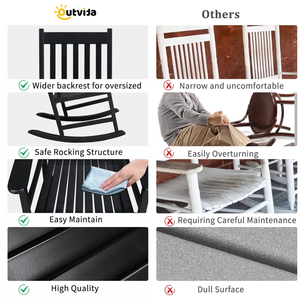 Oversized Wooden Outdoor Porch Rocking Chair with Armrests