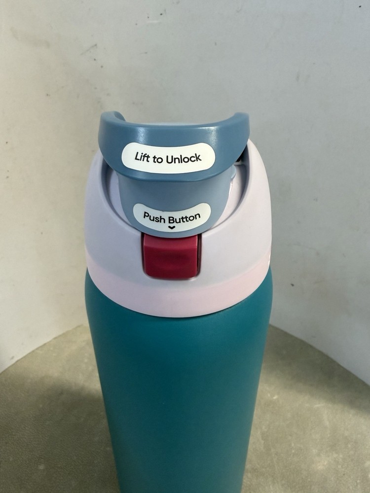 New without box Owala 40oz FreeSip Stainless Steel Bottle in Tickle Me Teal is a limited edition water bottle with a click closure and straw for easy sipping. Made of durable stainless steel, this BPA-free and insulated bottle is perfect for staying hydrated while on the go. With a sporty theme and leakproof design, this 40oz bottle is both practical and stylish, making it a great choice for camping, hiking, or everyday use. Hand wash only to maintain its vibrant green color and keep your drink cold for longer periods.