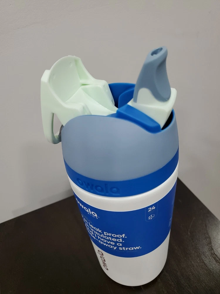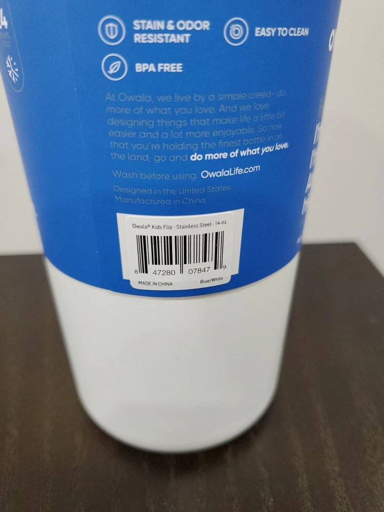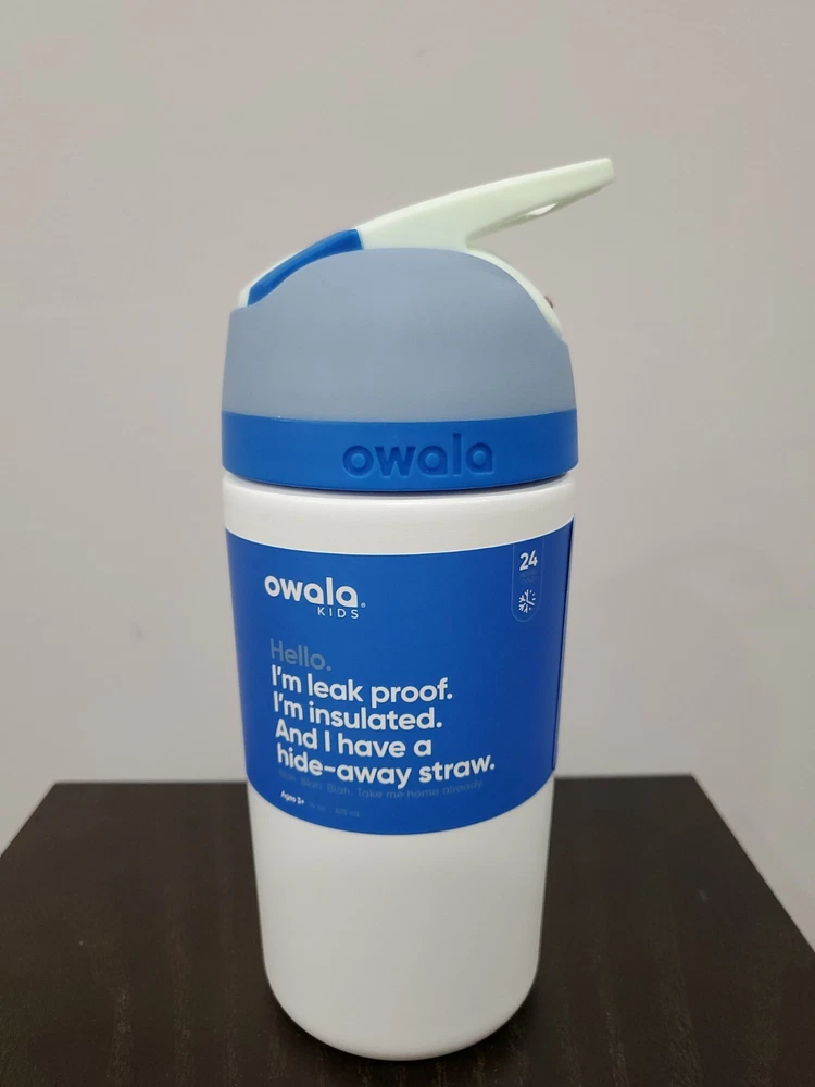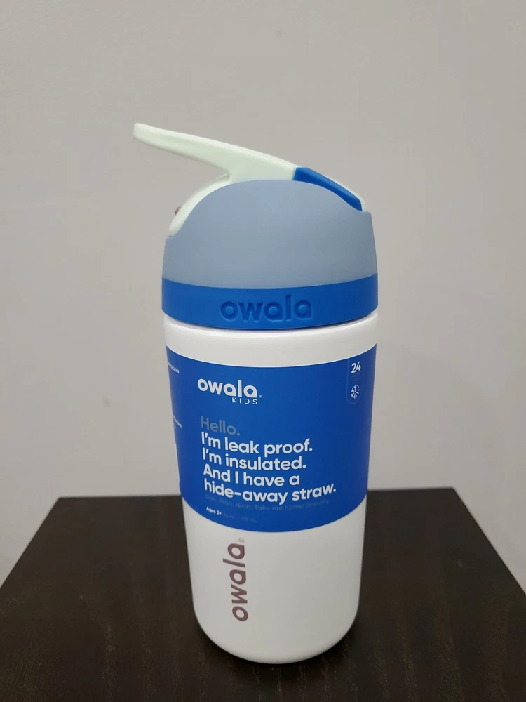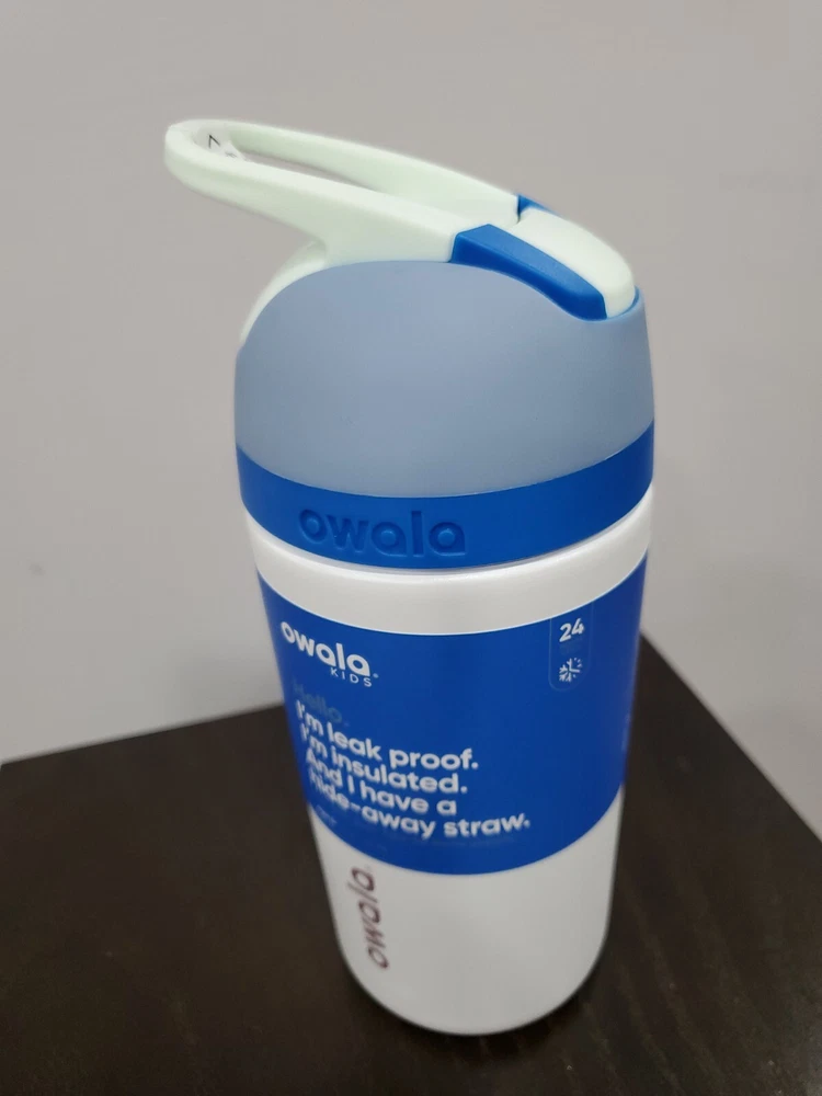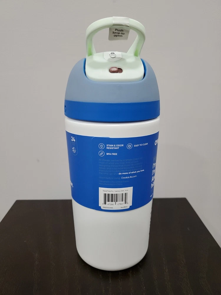 Owala Flip Kids Stainless Steel Water Bottle 14oz Color: Snow Dragon New. Whole Foods Exclusive. Description: Feel like a magician every time you open your bottle. A simple downward press on the loop flips out a built-in straw, wowing nearby on-lookers time and time again. Highlights -14-ounce insulated stainless-steel flip-top water bottle, featuring flip straw, locking lid, and kid-friendly operation -Hideaway flip straw tucks under leak-proof locking lid to stay clean and concealed when not in use -Easy one-handed open and close function encourages effortless hydration; integrated carry loop adds convenience -Double-wall insulation keeps drinks cold for up to 24 hours; wide opening for cleaning and adding ice; cup-holder friendly base -BPA and phthalate-free; hand wash cup, dishwasher-safe lid; not for use with hot liquids; manufacturer’s limited lifetime A note about shipping: I do bundle shipping if multiple items are purchased. At checkout you may pay as if each item is being shipped individually. Once all items have been packaged and the shipping label has been purchased, excess paid will be refunded! Also - I have a few different shipping options available on each listing so at checkout you can choose which option seems the most palatable for your particular situation!