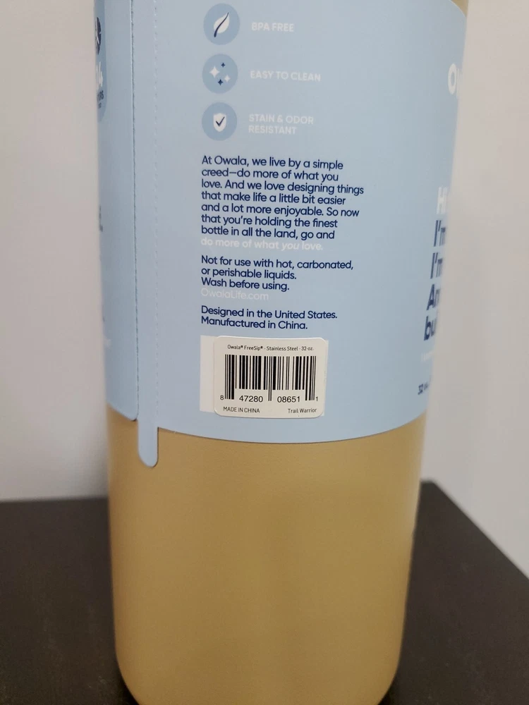 Owala FreeSip Stainless Steel Water Bottle 32oz Color: Trail Warrior All bottles are new. No obvious cosmetic concern. Please refer to manufacturer website for further item description and specifics. Posted on other selling platforms. Price is as listed unless I send out offers or change the price. I will not be responding to individual messages about offers. As a general rule, I do not make offers via private message. About this item: Patented FreeSip spout designed for either sipping upright through the built-in straw or tilting back to swig from the spout opening Protective push-to-open lid keeps spout clean; convenient carry loop doubles as a lock Double-wall insulation keeps drinks cold for up to 24 hours; wide opening for cleaning and adding ice BPA and phthalate-free; hand wash cup, dishwasher-safe lid; not for use with hot liquids Notes about shipping: - Please keep in mind that shipping rates are set by Ebay and I do not have control over Ebay prices. - There should be 4 shipping options in each listing but 99.9% of the time my default will be USPS Priority. Check the USPS Ground Advantage option/rate as a more cost-effective option. - I do bundle shipping if multiple items are purchased - this is an automatic setting courtesy of Ebay. BUT - if you happen to make multiple single item purchases like an hour or two apart, I can "fix this" behind the scenes. Once all items have been packaged and the shipping label has been purchased, I can refund any excess shipping that was paid. It is much easier to do it this way than for me to create a "bundle" for purchase as this type of ask rarely results in an actual purchase. - I may adjust a "selected" shipping option depending on what boxes I have available to safely package a purchase. If this is NOT ok, please include a "message to seller" in your purchase. - For international sales, there are two parts to each shipping cost. The first part I see which is the shipping cost from me to the Ebay international shipping hub. There is a second cost that I do not see and certainly cannot control which is a cost to ship from the Ebay international hub to the final destination. - For international sales part 2: Once the item is received by Ebay and leave the international hub, EBAY IS RESPONSIBILE FOR ANYTHING AND EVERYTHING PACKAGE RELATED. This means if it is not delivered, damaged in delivery, etc - it is EBAY you message to open a claim and NOT ME AS EBAY HAS ASSUMED RESPONSIBILITY FOR THE PACKAGE. There are many articles readily available about this and can easily be "googled" if you think I'm making this up.