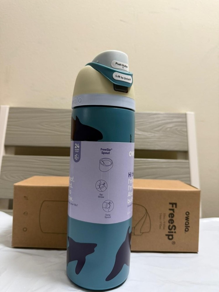 The Owala Fin Frenzy Color Drop 24oz FreeSip Stainless Steel Water Bottle is brand new and unused. It features Owala’s innovative FreeSip lid, allowing you to sip through the built-in straw or pour when tilted for added convenience. Made from durable stainless steel, this 24oz bottle is ideal for daily hydration, workouts, travel, school, or office use. The leak-proof locking lid helps prevent spills, while the vibrant Fin Frenzy Color Drop design adds a stylish touch. This reusable bottle is lightweight, easy to carry, and ready to ship.