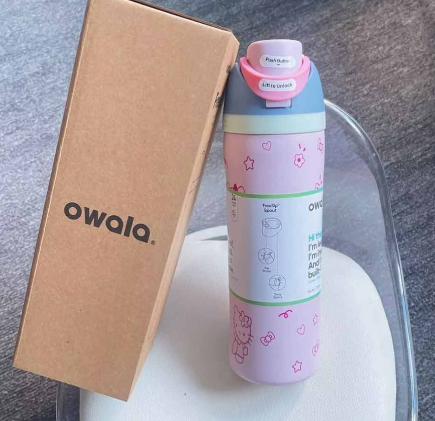 - The Owala FreeSip has a built-in straw and wide-mouth opening - Convenient hinge loops for easy carrying - Triple wall vacuum insulated water bottle keeps your beverages cold for up to 24 hours - Leakproof vacuum water bottle Content + Care - Stainless steel - Food safe - Lid: Dishwasher safe; not microwave or oven safe - Cup: Handwash only; not dishwasher, microwave or oven safe - Imported Size - Ounce capacity: 32 oz - Dimensions: 3.4"dia x 10.7"h
