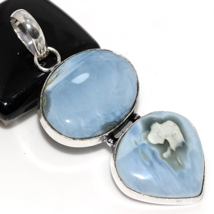 Owhyee Blue Opal 925 Silver Plated Long Pendant 2.3" Valentine Gifts JW