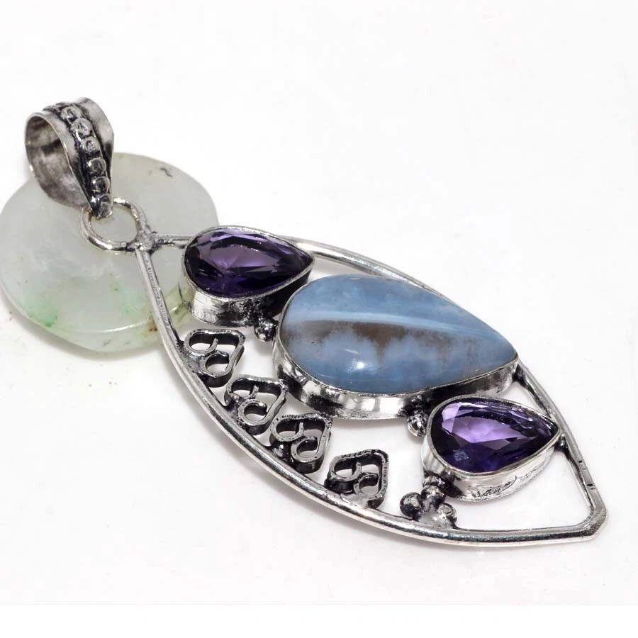 Owhyee Blue Opal Amethyst Gemstone Pendant 2.6" Aesthetic Jewellery JW