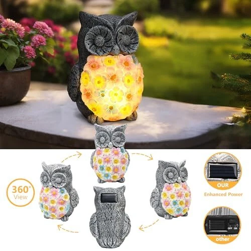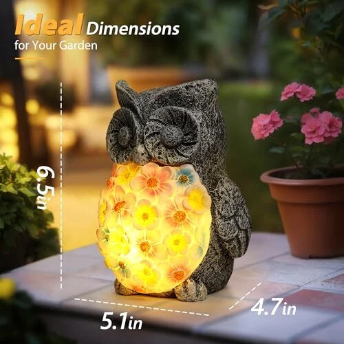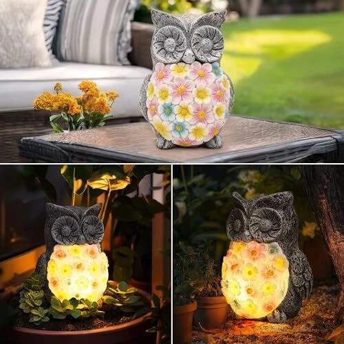 Menu 1. We require immediate payment. 2. We currently accept payment via eBay managed payments only. 3. Once payment is cleared, we will dispatch your shipment within 1-3 business days. Please refer to the "Shipping" tab for more information regarding shipping speed to your destination. Owl Solar Garden Outdoor Statues, 6.5 Inch Resin Owl Figurine Decorations with Solar Lights for Patio, Balcony, Home, Yard Art, Lawn Ornaments, Porch - Birthday Gifts for Grandma Mom Women Product description Elegant Floral Glow: This solar-powered owl statue features a floral-patterned glowing belly, enhancing any garden with its soft, ambient light. Durable Resin Material: Made from high-quality resin, this outdoor figurine is weather-resistant and durable, making it perfect for year-round outdoor and indoor use. Versatile Decor: Ideal for decorating pathways, steps, patios, and gardens, this unique snail outdoor statue also serves beautifully as a tabletop decoration (such as in flower pots) or as an attractive addition by ponds. Automatic Solar Recharging: The integrated solar panels capture sunlight to automatically recharge the LED lights, providing effortless lighting and a delightful ambiance every evening without the need for manual intervention. Perfect Gift Idea: An excellent choice for gardening enthusiasts or as a charming housewarming gift, this solar owl light statue is a thoughtful present for women who love gardening or outdoor decor. PLEASE MESSAGE US IF YOU HAVE ANY OTHER QUESTIONS, AND MANY THANKS FOR READING ALL OF THIS. Copyright ©#. All Rights Reserved.