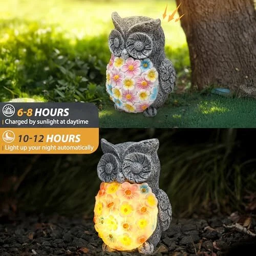 Owl Solar Garden Outdoor Statues, 6.5 Inch Resin Owl Figurine Decorations with