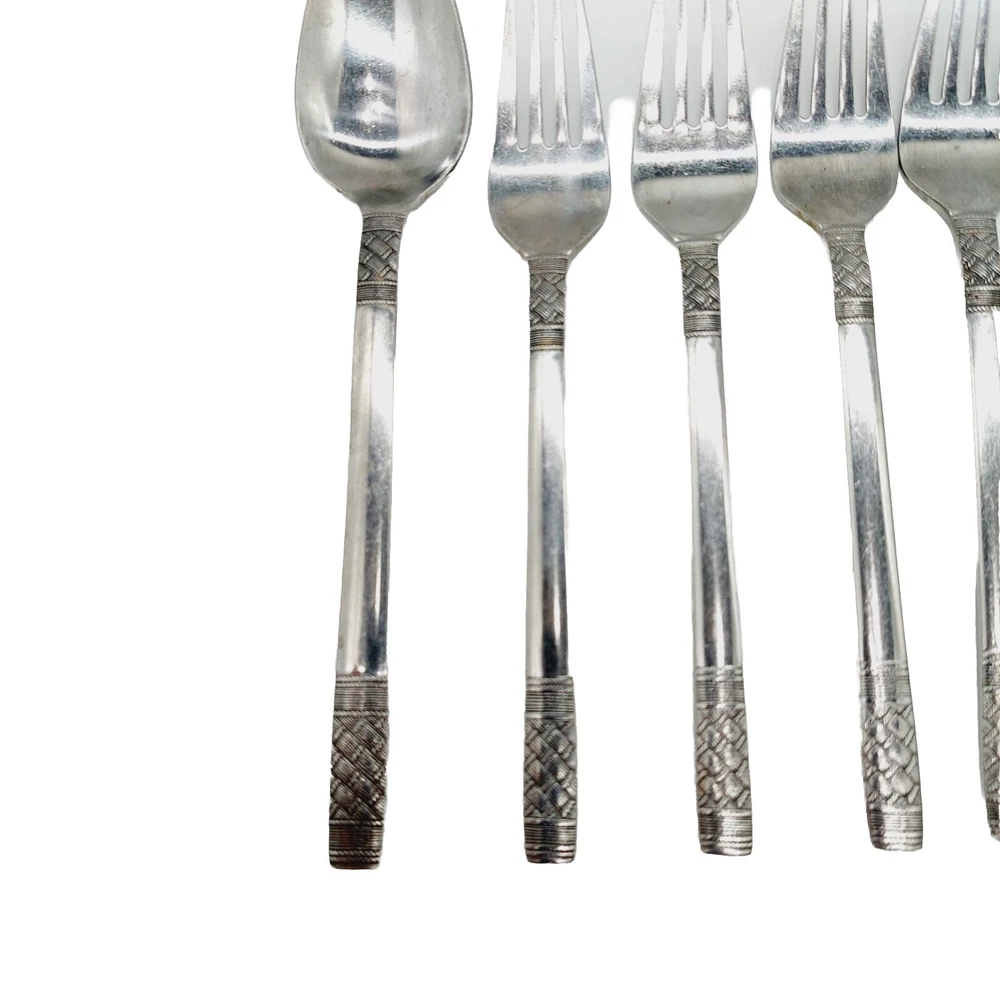 Oxford Hall Stainless Steel Korea Weave Pattern 1 Spoon 4 Forks Lot Of 5 READ