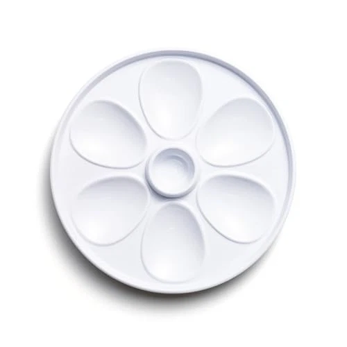 Enjoy oysters and your favorite sauce all in dish! The all in melamine plate has a built in sauce cup in the center and molds to hold up to 6 oysters at a time. This oyster serving plate can also hold crushed ice so that your shellfish is the perfect temperature without making a mess. Discover the perfect oyster experience! SERVE IN STYLE: Beautifully present and serve oysters with this seafood serving dish. The six molds hold your shells in place, making it easy to enjoy the oysters yourself or share with others. SIX OYSTER CAPACITY: The oyster tray holds six oyster shells that are up to 4.25”. This is plenty of space for most oysters as standard market size oysters are 3” to 4.25”. SERVED COLD: This oyster serving plate has the ability to hold crushed ice between the shells. This will keep your shellfish the ideal temperature so you can enjoy a perfect meal. SAUCE CONTAINER: The center of the serving plate comes with a built in condiment cup so all you need is hand to carry oysters and your favorite sauce. Keep dinner simple and mess free! MEASUREMENTS AND CARE: Dishwasher safe. The oyster plate has a 10.25” diameter and holds 6 oyster shells that are up to 4.25” large.