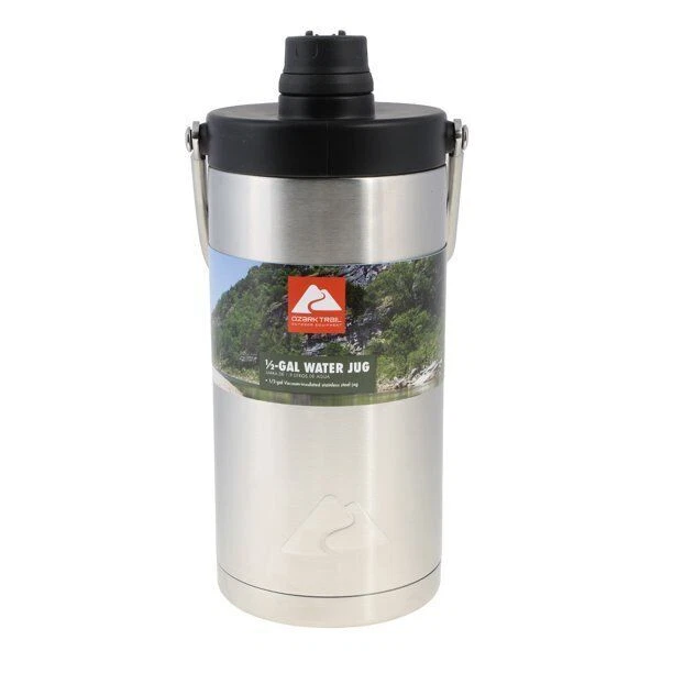 Ozark Trail 1/2 Gallon Double-Wall Vacuum-Sealed Stainless Steel Water Jug Complete your collection of camping gear by bringing home an Ozark Trail Half Gallon Double-wall Vacuum-sealed Stainless Steel Water Jug. Ideal for a wide variety of outdoor expeditions ranging from hiking trails with your dog all the way to taking a float trip down the river with your friends, this water jug's durable high-grade BPA-free stainless steel construction allow it to stand up to whatever your journeys throw your way. Plus, it's double-walled insulated for maximum temperature control, meaning you can enjoy either an ice-cold soda while you're soaking up the summer sun out on the lake or enjoy some hot coffee as you watch the sun rise on your annual fall camping trip. Whether it's sun or rain, spring or fall, at home or in the great outdoors, the Ozark Trail Half Gallon Double-wall Vacuum-sealed Stainless Steel Water Jug is ready for service. Ozark Trail 1/2 Gallon Double-wall Vacuum-sealed Stainless Steel Water Jug: Great for both hot and cold liquids Ideal for a range of activities Made of durable, high-grade, double-walled 18/8 stainless steel BPA free Holds up to a half gallon of liquid Includes a lid with a convenient built-in carrying handle Top rack dishwasher safe On Mar 29, 2024 at 20:23:58 PDT, seller added the following information: On Nov 9, 2024 at 21:50:08 PST, seller added the following information: