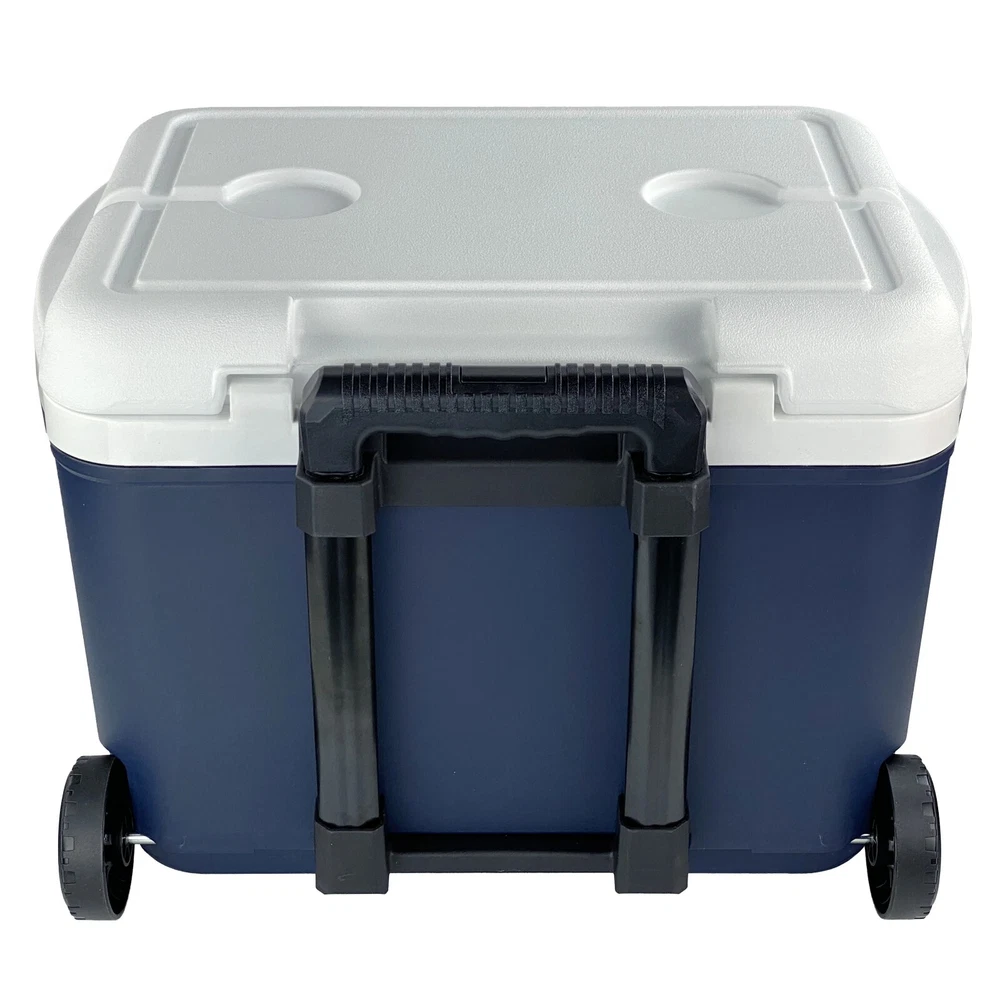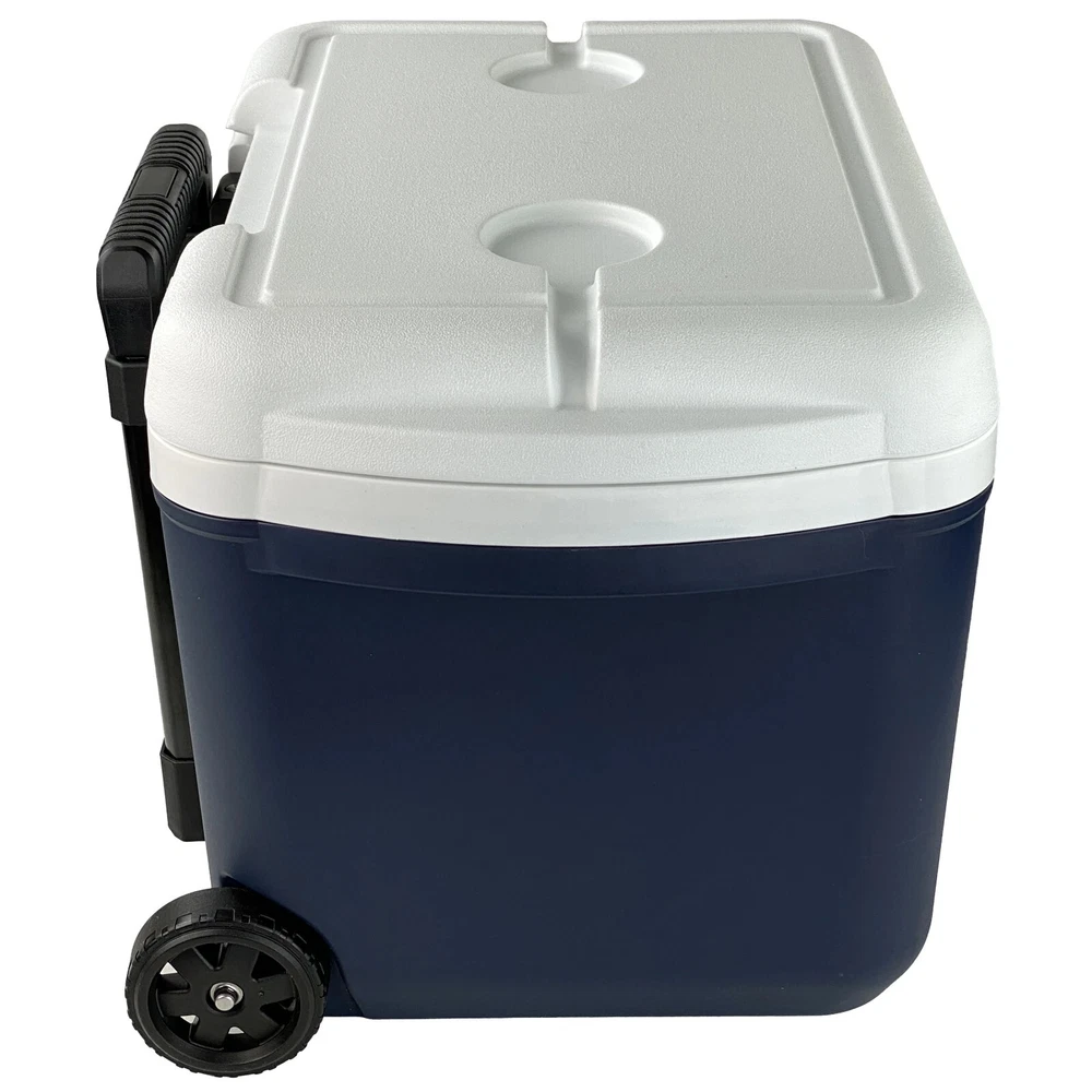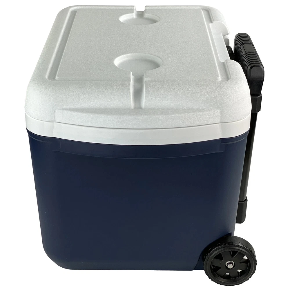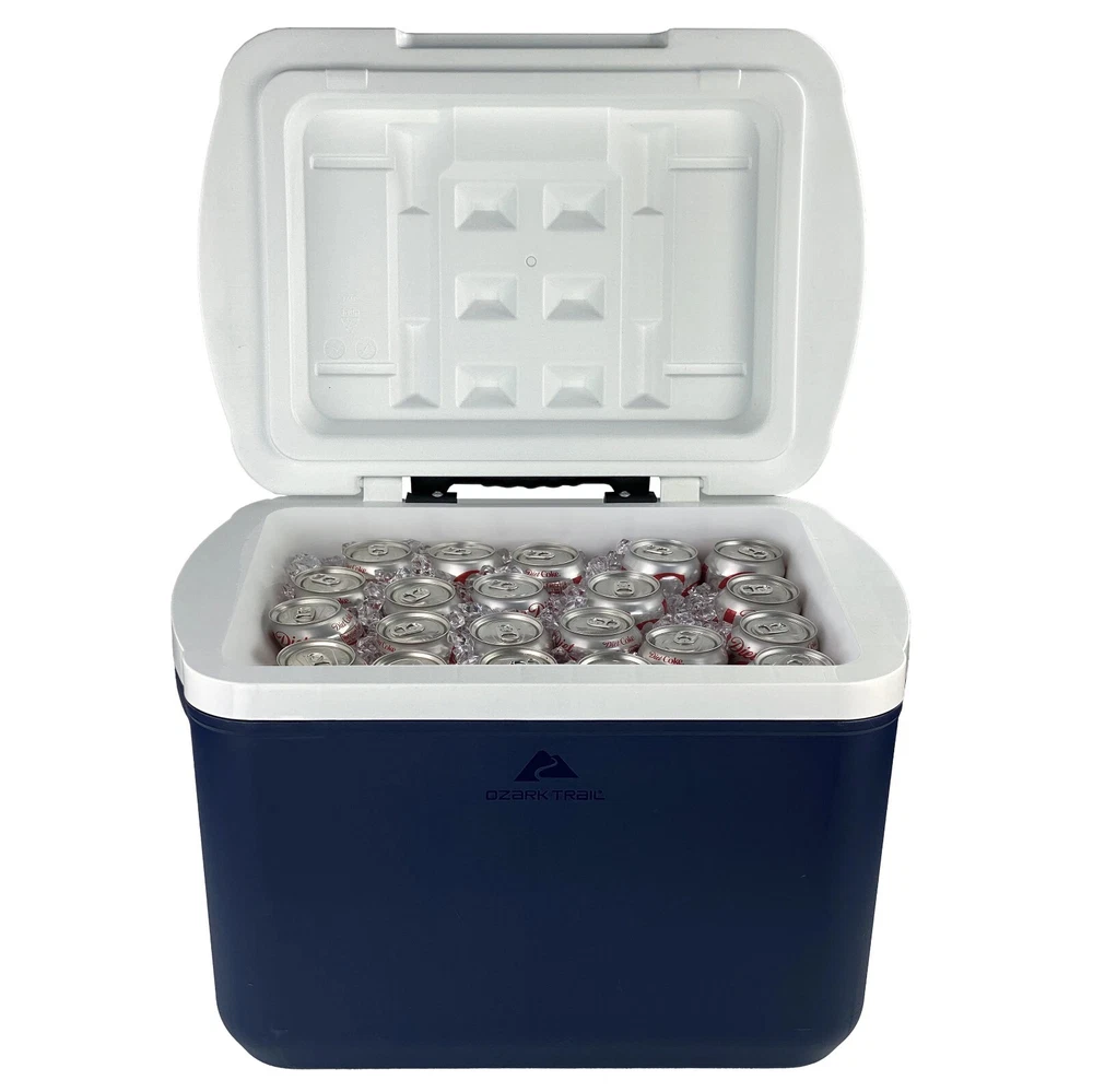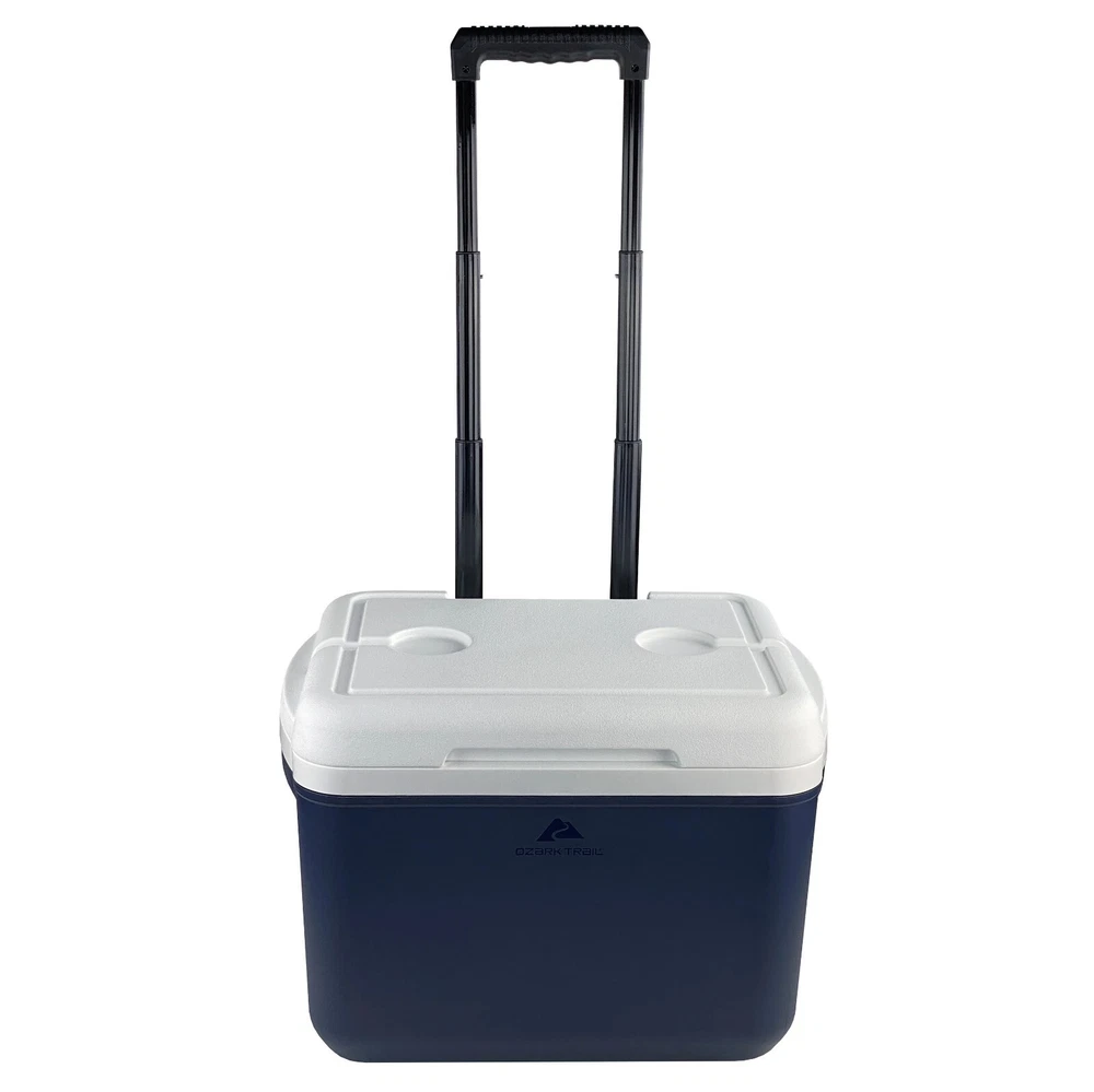 Ozark Trail 30 Quart Hard Side Wheeled Cooler, 42-Can Capacity, Blue Start your adventure outdoors off right with the Ozark Trail 30 Quart hard-side rolling cooler. With a telescopic wheel system, This 30 QT cooler is easy to roll to any event. With thick insulation your snacks and beverages will stay cool until you're ready to enjoy. This cooler features a 28-Liter storage capacity that holds up to 42 (12-oz) cans. Keep your beverages close by with the molded cup holders on the lid of the cooler. This Ozark Trail 30-quart cooler is made with a minimum of 25% post-consumer recycled plastic. Adventure is where memories are made, whether it's campouts in the backyard with the kids, Saturdays at the river with friends, or a week in the wilderness alone. Ozark Trail helps you and your family create everyday adventures with gear and accessories built with you in mind. From backpacks to tents, they're rugged and dependable. Because adventure is not a destination; it's a lifestyle. Ozark Trail 30 Quart Rolling Cooler 42-Can Capacity For best storage results, stack cans in vertically first, then horizontal along the top layer. Apply ice on top until the cooler fills to the top. Telescopic Handle and Wheel System Dual Side Carry Handles Dual molded Lid Cup Holders Made with a minimum of 25% post-consumer recycled plastic Features No features description available Brand Ozark Trail Manufacturer Part Number OT-30Q-US-R Color Blue Assembled Product Weight 7.5 lb Assembled Product Dimensions (L x W x H) 20.00 x 14.10 x 15.11 Inches
