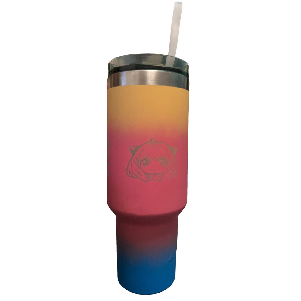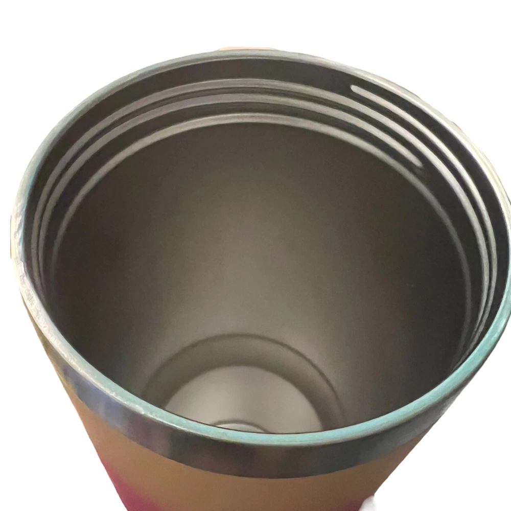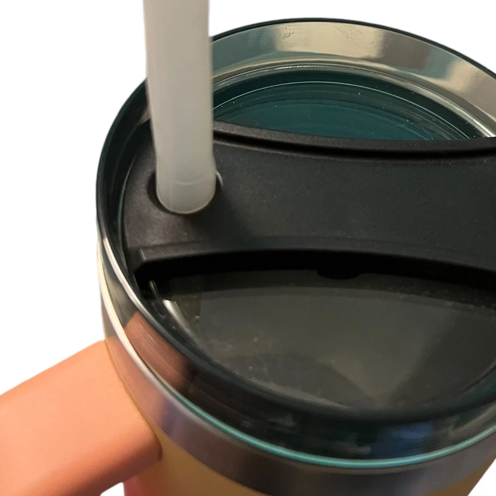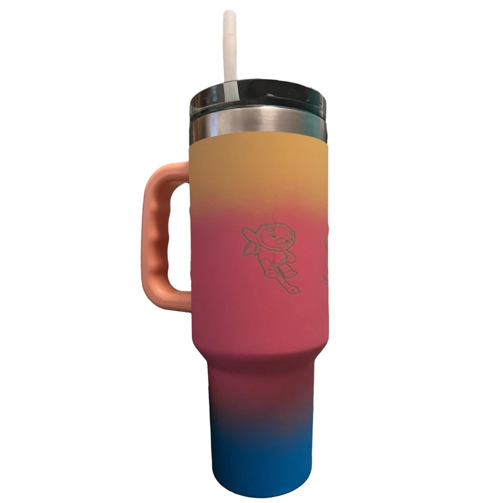 Ozark Trail 40 oz Vacuum Insulated Stainless Steel Gradient Tumbler Laser Carved Description: Stay hydrated with the Ozark Trail 40 oz Vacuum Insulated Stainless Steel Tumbler. This high-quality tumbler features a vibrant gradient finish with intricately laser-carved designs, ensuring a unique and attractive look. Designed for hot and cold beverages, its vacuum insulation keeps drinks at the perfect temperature for hours. Key Features: • Capacity: 40 oz, perfect for long trips or daily hydration. • Material: Durable stainless steel construction. • Insulation: Vacuum insulated to keep drinks cold or hot for extended periods. • Gradient Design: Stylish ombre finish with laser-carved designs for added appeal. • Handle: Comfortable integrated handle for easy carrying. • Lid & Straw: This product includes a tight-seal lid and reusable straw for spill-proof use. Condition: Unused, like-new condition. No original packaging.