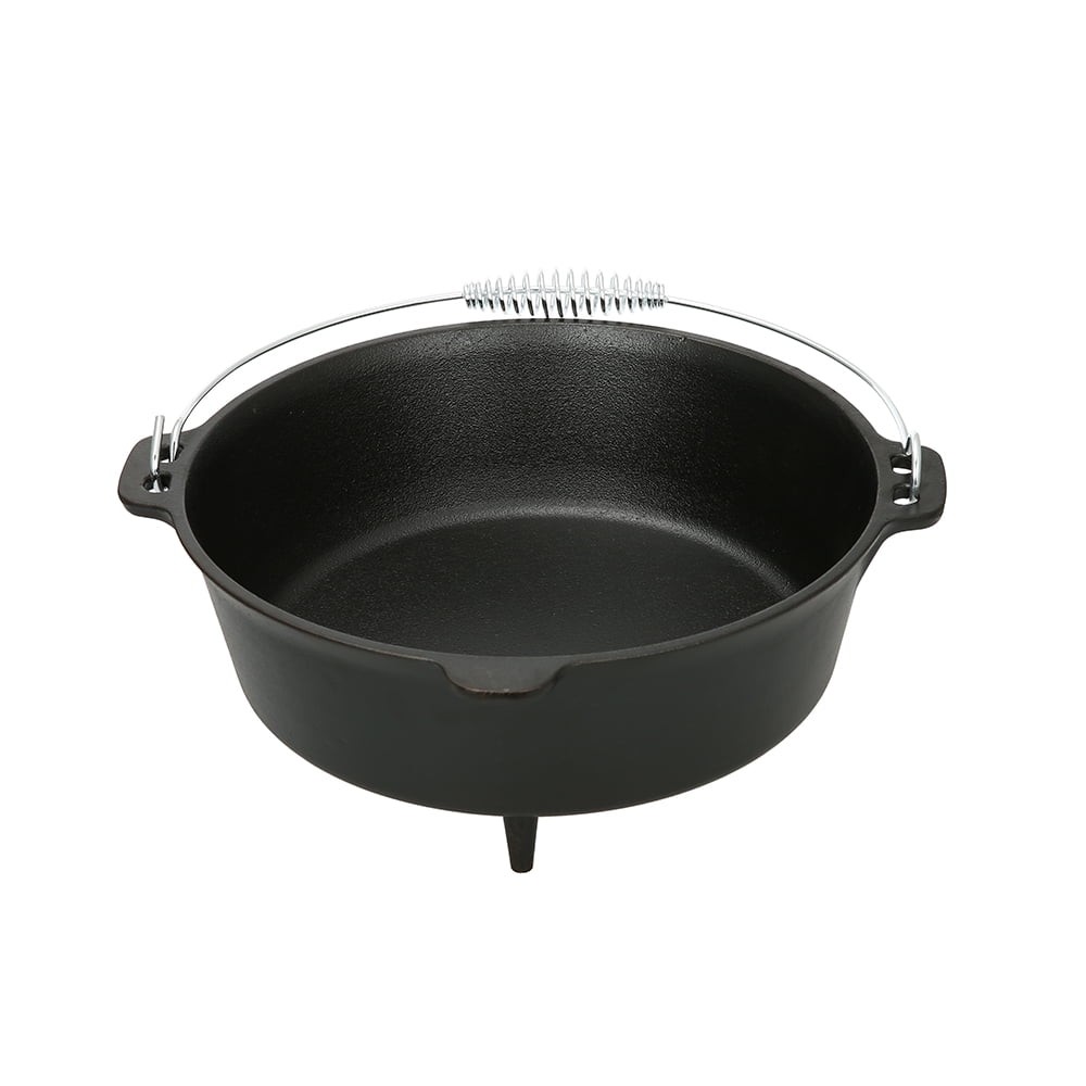 This convenient campsite cooking item weighs 10 pounds from its durable cast iron construction, is pre-seasoned to give your food a unique and hearty flavor, and works to evenly distribute heat to the food inside for uniform cooking. Plus, its sturdy cast iron material allows it to be used in the oven, on the stovetop, and over an open fire to provide you with the versatility you need in your home and campsite cooking. Whether you want to bake, fry, or stew, the Ozark Trail Cast Iron Dutch Oven will do the job. Ozark Trail 5qt Pre-Seasoned Nonstick Cast Iron Dutch Oven with Spiral Bail Handle DURABILITY - Made from sturdy cast iron material, ensuring years of reliable use DELICIOUS - Pre-seasoned for a unique and hearty flavor in your meals EASY GRIP - Features a stainless steel spiral bail handle for easy transport VERSATILE - Ideal for campers cooking over an open fire or for use in the oven and on the stovetop HAND WASH ONLY - for optimal care and longevity of the product