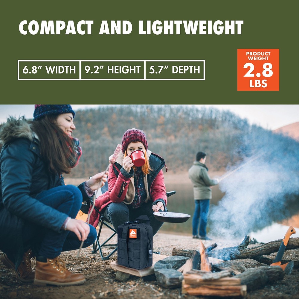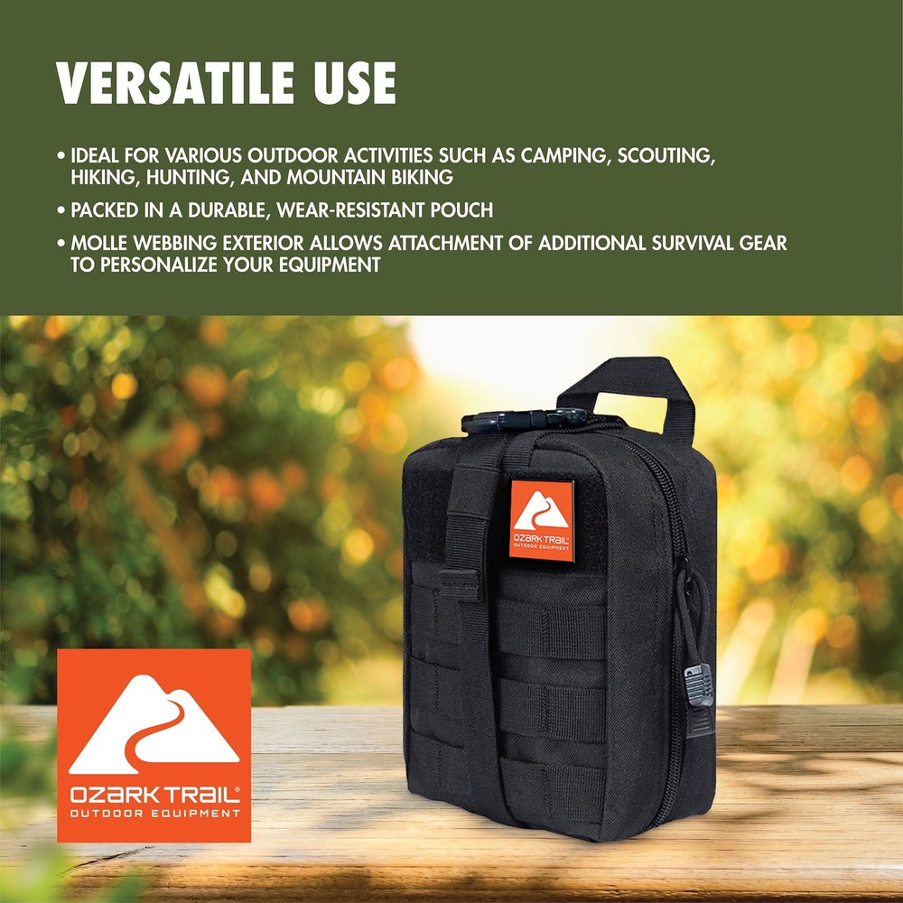 This 21 piece survival kit contains everything you need to survive your next hiking or camping adventure! Includes a water bottle hook, flashlight, camping fork, folding knife, folding shovel, nylon carry bag, tree saw, pocket tool card, whistle, fire starters, glow sticks, scissors, survival blanket, paracord bracelet with compass and more! Be sure to pack your Ozark Trail survival kit on all your adventures so you're never left stranded. Also perfect to keep at home or the office in case of natural disaster emergencies such as earthquakes or hurricanes. Never be left unprepared again! Easy to carry weighing 3lbs. Complete Survival Kit: Contains all the items you need for outdoor activities, such as water bottle hook, flashlight, camping fork, folding knife, folding shovel, nylon carry bag, tree saw, pocket tool card, whistle, fire starters, glow sticks, scissors, survival blanket, paracord bracelet with compass and more! Portable: All of this survival equipment is packed in a durable and wear-resistant pouch measuring 9.25x6.85x5.66in, which is easy for you to carrying on any adventure. the molle webbing exterior allows you to attach other survival gear to the pouch to personalize your equipment. Wide Application: Perfect for taking care of many emergency needs during outdoor wilderness adventures such as camping, boy scouts, hiking, hunting and mountain biking, etc.