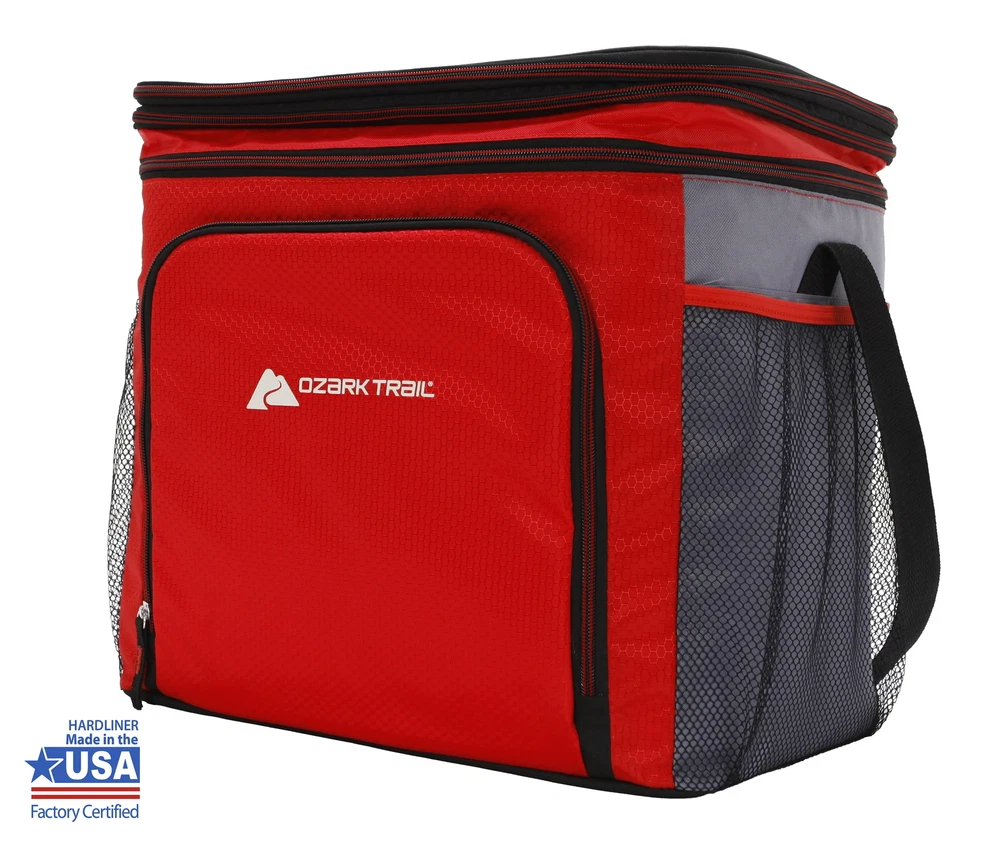 Keep your food and beverages cool with this handy 24-cans soft-sided cooler It features an easy-to-use front zipper pocket for additional storage. The shoulder strap adjusts to different lengths to make it easy to carry. This cooler also comes equipped with a removable, easy-to-clean plastic hardliner and showcases the logo on the front. It cans be useful while camping, hiking, tailgating, or spending the day at the beach. Make your next purchase the correct and affordable one. Stock up with this affordable 24 cans cooler today. Adventure is where memories are made, whether it's campouts in the back yard with the kids, Saturdays at the river with friends, or a week in the wilderness alone. helps you and your family create everyday adventures with gear and accessories built with you in mind. From backpacks to tents, they're rugged, dependable, and priced to be practical. Because adventure is not a destination; it's a lifestyle. 24-cans Soft-Sided Cooler, Black The soft-sided cooler capacity accommodates 24 cans + ice A 3" expandable top storage compartment is perfect for storing sandwiches, chips, or utensils. The front zipper pocket is great for storing small accessories like keys and sunscreen A removable plastic hard-liner cans be easily taken out and cleaned between uses. Adjustable, padded shoulder strap Dual side mesh accessory pockets