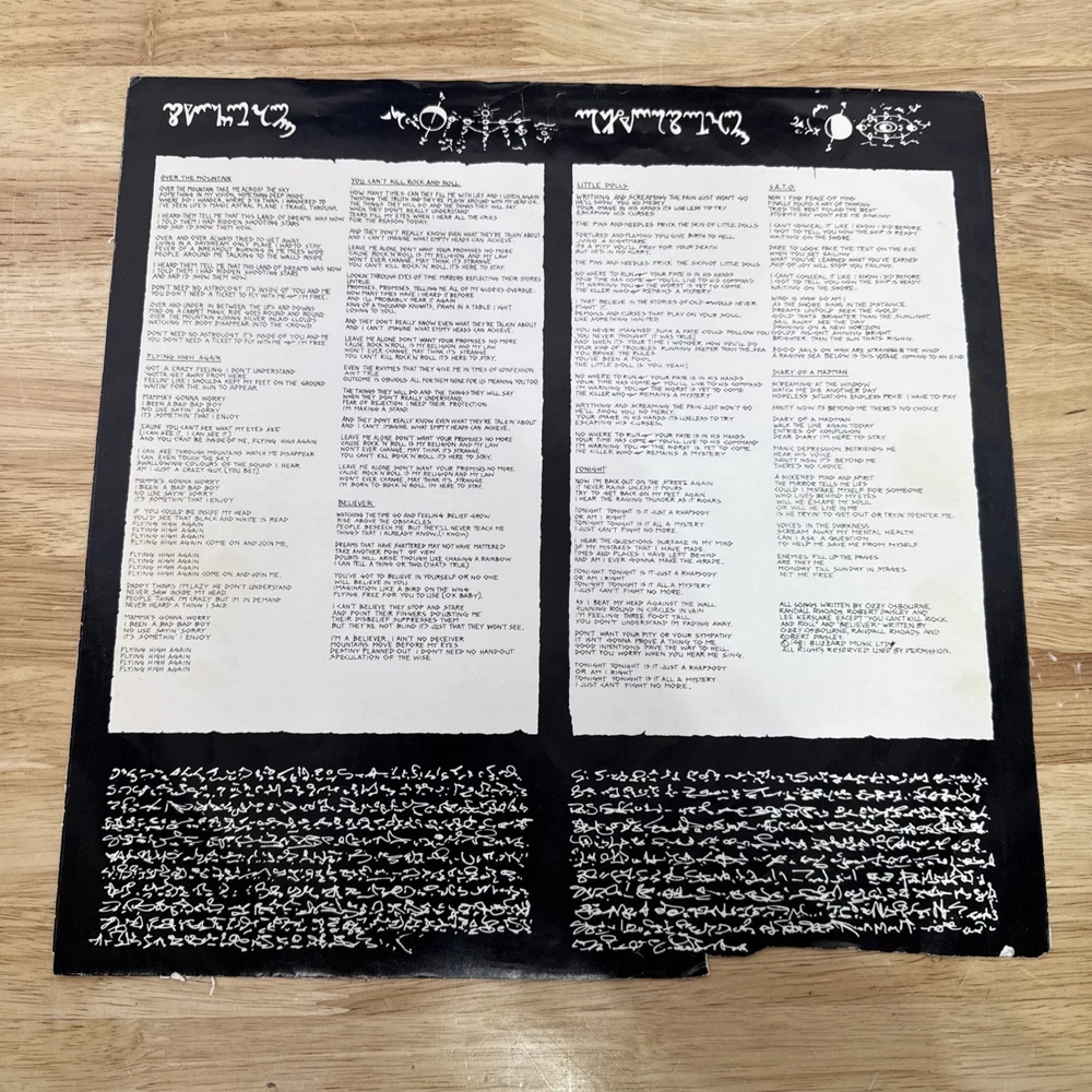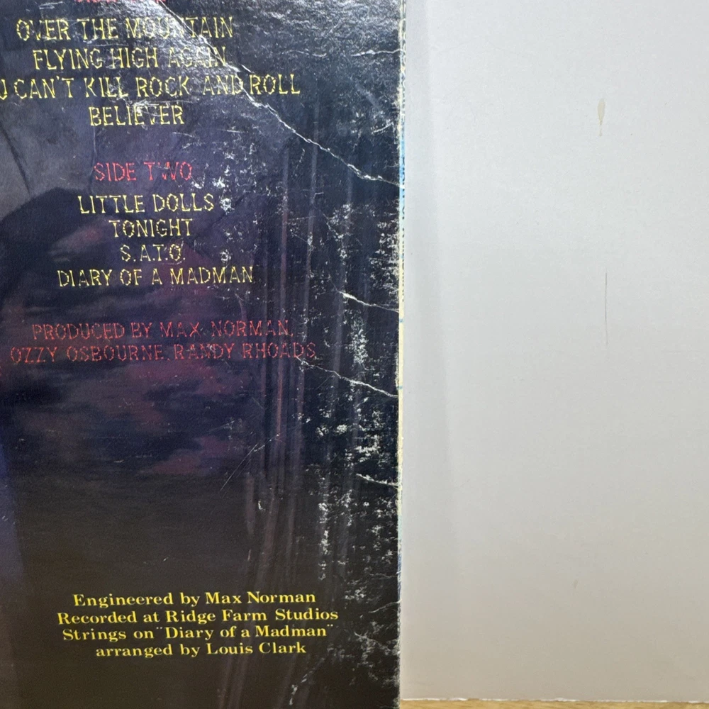 Vintage Ozzy Osbourne vinyl record. Cardboard sleeve and inner sleeve have some damage. On the cardboard sleeve there is heavy wear around the edges and the bottom edge is about half included. The inner paper sleeve is ripped and worn. Vinyl record is in good condition with no major scratches. Fast one day handling. Shipped via USPS media mail. Unsatisfied for any reason? 30 day return policy offered with no questions asked. Thanks for looking!