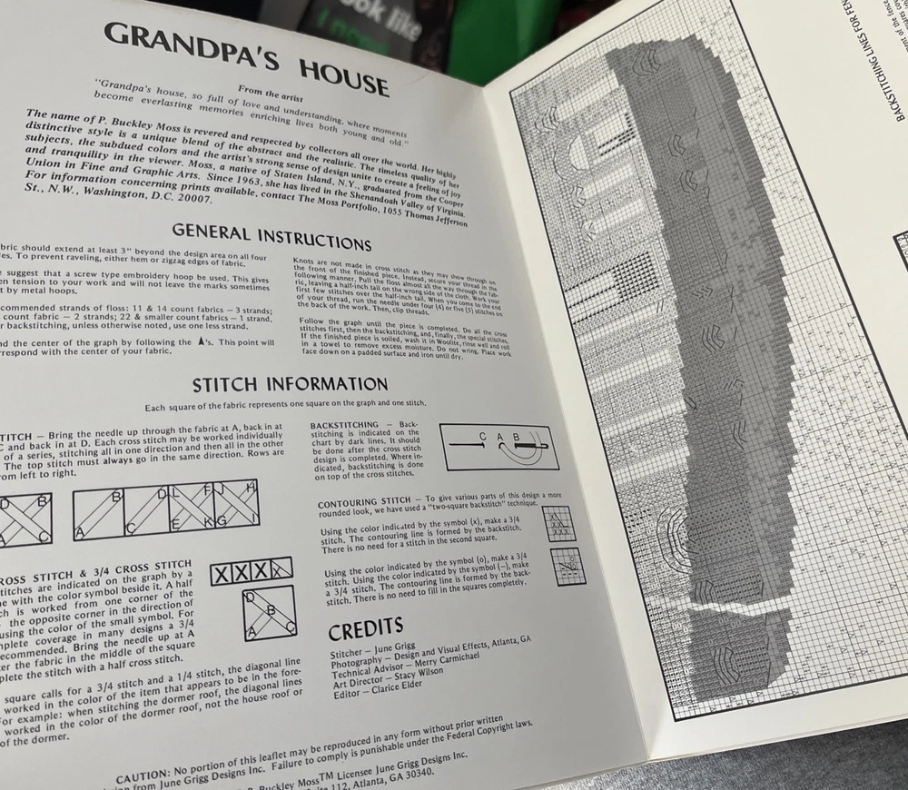 P Buckley Moss Grandpa's House Cross Stitch Leaflet #114 June Grigg Designs