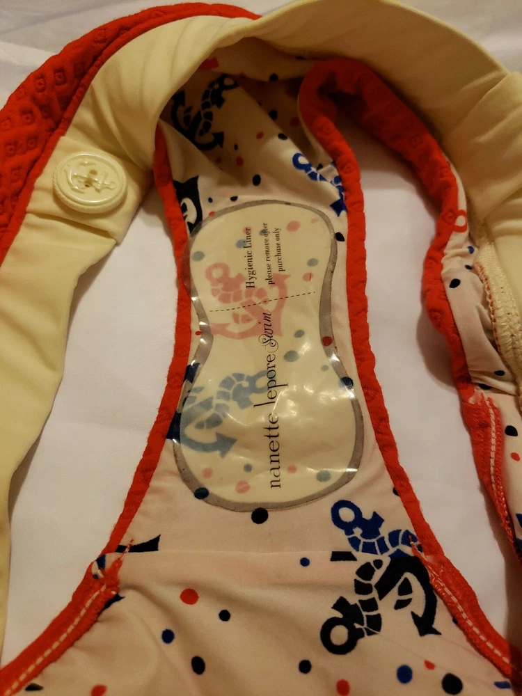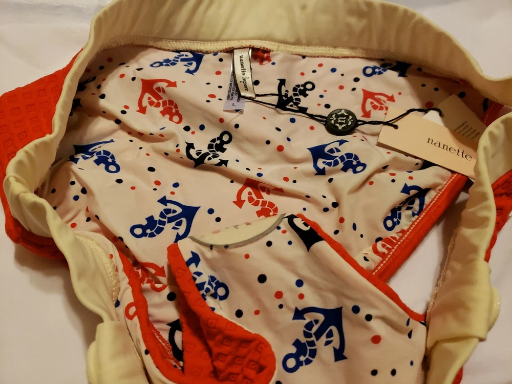 BRAND NEW with original tags attached. Macy's Nanette Lepore Textured Red with ivory contrast waistline. Adorned with nautical anchor buttons and anchor print on lining. Original Price $88 CLEARANCE - ONLY $23.50 And I pay for the shipping! Less than 1/3 of the price.