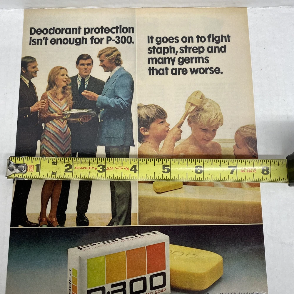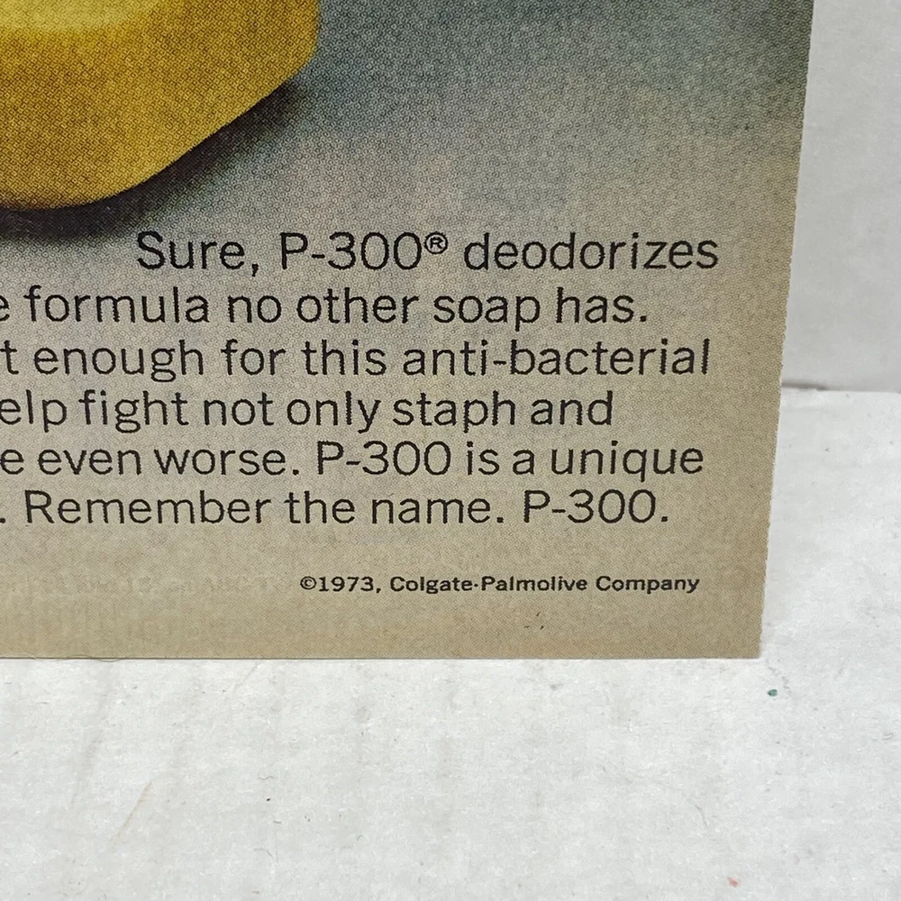 P-300 Anti-Bacterial Deodorant Bar Soap Vtg 1973 Full-Page Magazine Ad Collect