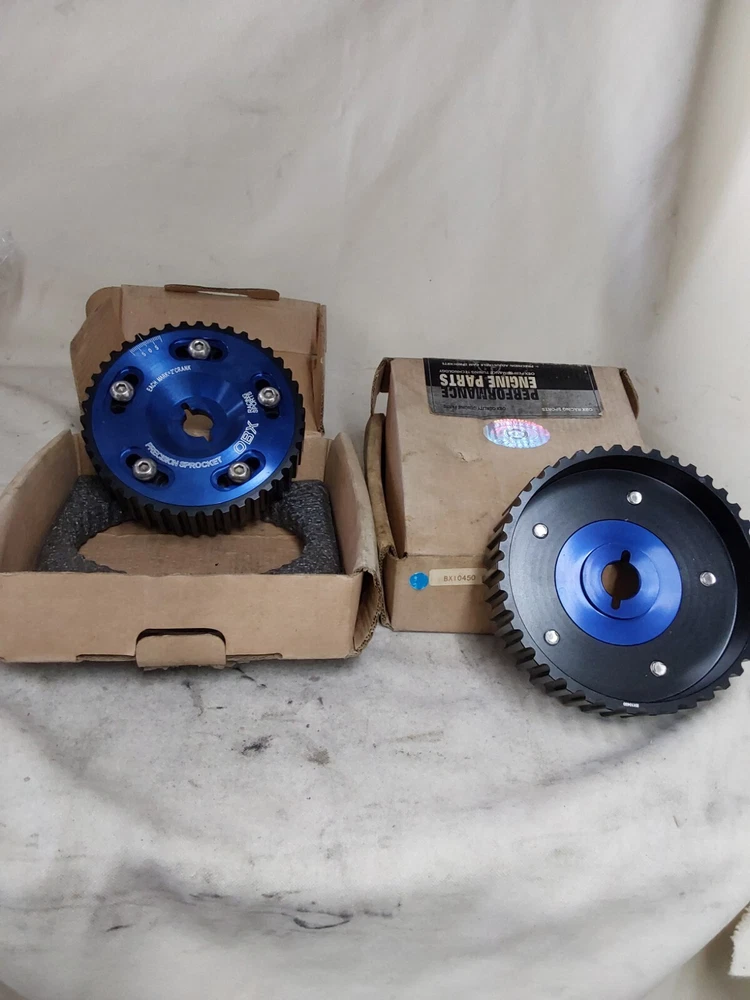 Selling as a set. Set of NPR PA55020-STD pistons and rings, slight dome w/4 valve reliefs 4 H Beam Rods no markings except bolt head 8740, Quick mic to compare 2.008 large end, .825 small end, w/ 5.47 c/c length 'stock sizing' 2 OBX Racing BX10450 Adjustable Cam Gears in a pretty Blue and King CR4183AM-STD rod bearings, book noted for .002 oversize OD [not sure why they are there] All go to 1995-99 Dodge Neon 2.0L DOHC 122CID 1996CC 420A also in Avenger, Sebring and Talon All new. Just been hanging around in the garage. Please use 'due diligence' to be sure these are the appropriate numbers you need. These are brand new never installed. This is 'sold as is'. No return. We are an actual business [58yrs] in automotive repair and machine shop. That specialized in engine rebuilding. So there has been a LOT accumulated, over the years. We only post what we have in stock! And every effort is put in to make sure the information is posted correct. Will ship out after receiving payment in 1-3 business days. Shipping is USA, lower 48 states, please.