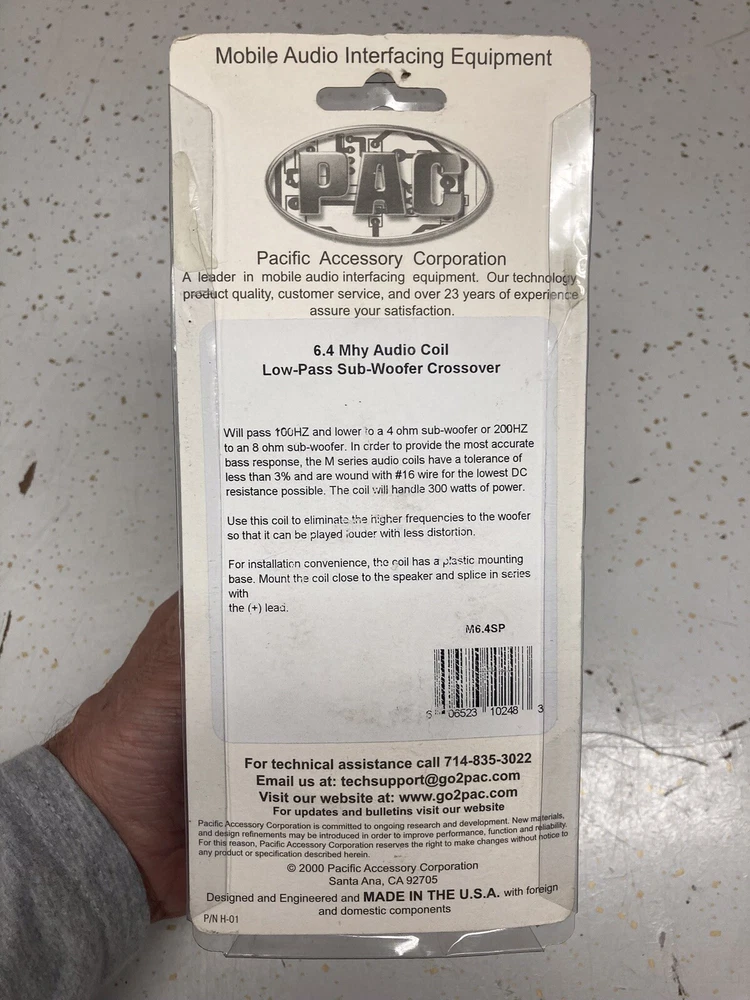 PAC M6.4SP, 6.4 mHy Audio Coil, Subwoofer. Low Pass Crossover