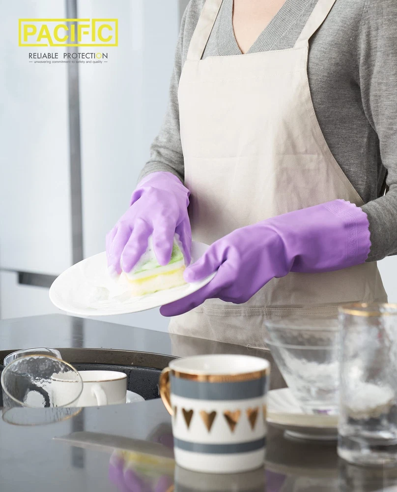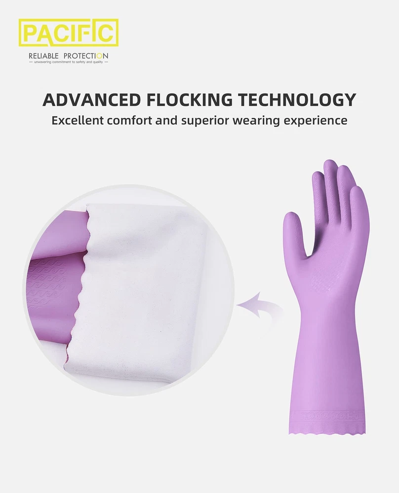๐๐ซ๐๐ฆ๐ข๐ฎ๐ฆ ๐๐๐ ๐๐๐ญ๐๐ซ๐ข๐๐ฅ:These dishwahsing gloves made of premium PVC material, latex-free, DEHP-free, better solutions for people with sensitive skin. ๐๐๐ฏ๐๐ง๐๐๐ ๐ ๐ฅ๐จ๐๐ค๐ข๐ง๐ ๐๐๐๐ก๐ง๐จ๐ฅ๐จ๐ ๐ฒ:The kitchen gloves Adopt advanced flocking technology that weaves cotton and PVC seamlessly, making you superior comfort and soft for long time wear. And also features excellent protection from hot water. ๐๐จ๐ง-๐ฌ๐ฅ๐ข๐ฉ ๐๐ซ๐ข๐ฉ:Rubber gloves design of granules in the palm and fingers increases friction to ensure a better grip and control in dry and wet conditions. Kitchen Gloves for dishwashing fit hands well, pull-on closure sleeves are easy to take on and off. ๐๐๐ฎ๐ฌ๐๐๐ฅ๐ ๐๐ง๐ ๐๐จ๐ฆ๐๐จ๐ซ๐ญ๐๐๐ฅ๐:26.6 Mils thickness dish gloves for maximum durability. Thicker material to avoid tearing and puncturing, longer cuffs (12.6 inches) to provide effective barrier to protect wrists and forearms from moisture and some corrosive fluids. ๐ ๐จ๐ซ ๐๐๐ง๐๐ซ๐๐ฅ ๐๐ฎ๐ซ๐ฉ๐จ๐ฌ๐:Durable reusable cleaning gloves are ideal for dishwashing, cleaning kitchen, bathroom and toilet, gardening hairdressing, clothes washing, pet caring, washing your car, handling with dishwashing and other household chores and more. Our cleaning gloves meet CA Prop.65 regulations for phthalates.