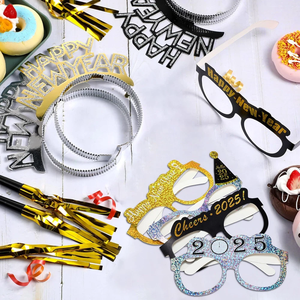 PACK Accessories Decoration for New Years Eve Party Supplies 2025 Fancy 108 Pcs Nice Party Supplies Combination: you will get 108 pieces of happy New Year party supplies, including 36 pieces of New Year 2025 glasses with 6 designs, 36 pieces of party paper headbands in 3 colors, and 36 pieces of gold noise makers; Sufficient quantity to satisfy your New Year party decoration needs, bringing you a memorable party time Reliable Materials: 2025 New Year Eve glasses and headbands are made of quality cardboard paper, lightweight and stable, wear-resistant, not easy to deform, fitting for different ages, comfortable and smooth to wear; While the noise maker adopt gold fringed plastic with black plastic mouthpieces, making funny noise at your upcoming party Lightweight and Reusable: these 2025 New Years Eve party favors can be applied for several times, convenient to store and carry without taking up too much space, suitable for both indoors and outdoors Useful and Meaningful Props: these new year glasses 2025 and headbands are mainly in black, silver and gold colors, classic and elegant, eye catching and delicate, make you stand out from the crowds, exquisite accessories for role playing props and photo props Applicable Occasions: these New Year celebration accessories are simple to use , which are suitable for many occasions, such as family gatherings, friend gatherings, New Year party, New Year Eve, Christmas, birthday, weddings, etc., adding a lively and festival atmosphere Features: The new years even party supplies 2023 are ideal for family gatherings, friend gatherings, New Year party, New Year Eve, Christmas, birthday, weddings and more, adding festive atmosphere. The new years eve party decor can be regarded as interesting gifts for friend, family member, classmate and more, make them stand out from the crowds. Specifications: Material: plastic, paper and more Color: mainly silver, gold and black Size: as shown in pictures Package includes: 36 x New Year 2023 glasses 36 x Party paper headbands 36 x Gold noise makers Notes: Manual measurement, please allow slight errors on size. The color may exist a slight difference due to different screen displays. Shipping We offer FREE shipping on all orders! We ship within Three business days of payment, usually sooner. We use a selection of shipping services such as UPS, FedEx, USPS etc. We only ship to the lower 48 states, no APO/FPO addresses or PO Boxes allowed. Local pickups and combined shipping options are not provided at this time. Return You can return a product for up to 30 days from the date you purchased it. Any product you return must be in the same condition you received it and in the original packaging. Please keep the receipt. Payment We accept payment by any of the following methods: PayPal Please pay as soon as possible after winning an auction, as that will allow us to post your item to you sooner! Feedback Customer satisfaction is very important to us. If you have any problem with your order, please contact us and we will do our best to make you satisfied. Contact Us If you have any queries, please contact us via ebay. We usually respond within 24 hours on weekdays. Please visit our eBay store to check out other items for sale! Thank you for shopping at our store.