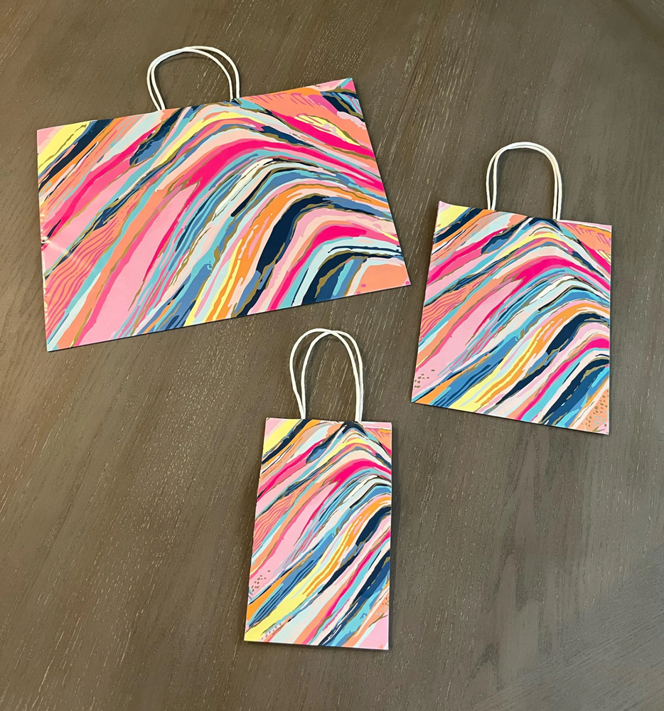 DR E A M P A R T Y C R E A T I O N S Thank you for visiting us: PAINTED DESERT Gift Bag Bundle with Tissue Paper, Gift Tags, Raffia Ribbon Choose Bundle Package INCLUDED IN BUNDLE PACKAGE: *********************************************************** (Pack of 3 Includes): 1 ROSE BAG 1 CUB BAG 1 VOGUE BAG 10 Yards Pearlized Raffia 4 -- 15" x 20" Design Tissue Paper 6 -- 20" x 30" Solid Color Tissue Paper 3 Gift Tags *********************************************************** (Pack of 9 Includes): 3 ROSE BAG 3 CUB BAG 3 VOGUE BAG 30 Yards Pearlized Raffia 12 -- 15" x 20" Design Tissue Paper 18 -- 20" x 30" Solid Color Tissue Paper 9 Gift Tags *********************************************************** (Pack of 15 Includes): 5 ROSE BAG 5 CUB BAG 5 VOGUE BAG 50 Yards Pearlized Raffia 20 -- 15" x 20" Design Tissue Paper 30 -- 20" x 30" Solid Color Tissue Paper 15 Gift Tags *********************************************************** (Pack of 30 Includes): 10 ROSE BAG 10 CUB BAG 10 VOGUE BAG 100 Yards Pearlized Raffia 40 -- 15" x 20" Design Tissue Paper 60 -- 20" x 30" Solid Color Tissue Paper 30 Gift Tags *********************************************************** BAG SIZES: ROSE SIZE -- 5-1/4x3-1/2x8-1/4" CUB SIZE -- 8x4-3/4x10-1/2" VOGUE SIZE -- 16x6x12" paper gift bags are 100% recyclable, made with a minimum of 40% post consumer recycled content HOW TO COMBINE SHIPPING: Shipping will combine if you add all the DREAMPARTYCREATION items to your Ebay cart first without paying. Once all the items you need are in your Ebay cart, The shipping will combine at checkout. After payment is made, We are unable to combine shipping for additional item.