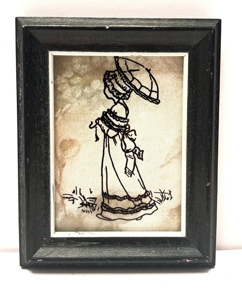 PAIR 1930’s Painted Silhouette on Glass with canvass type material backing and wood frame. Both depict a Victorian Girl out for a stroll. Measures approximately 5-1/4” inches in tall and 4-1/4” inches wide. I have an entire collection of silhouettes I'm listing and will combine shipping for multiple purchases and refund the difference. Please look at all of the pictures and ask questions prior to buying. I will only ship to the lower 48 states for the cost provided in the auction, but can ship to AK, and HI for shipping costs. If you live overseas, please take advantage of eBay’s Global Shipping program. Check out my other Silhouettes on my eBay store: https://www.ebay.com/str/nosmustangparts