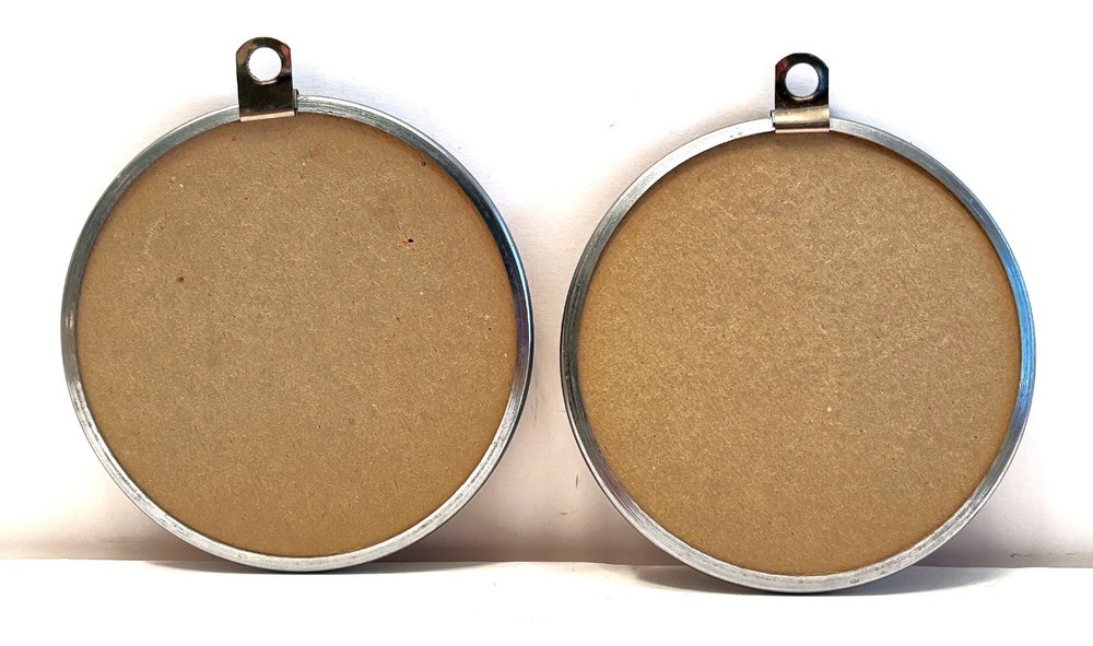 PAIR 1930’s Reverse Painted Silhouette on ROUND Convex Glass with Silver Metal Frame. Depicts young Victorian Woman seated playing the piano / harpsichord with Man Singing at her side and Woman on dance floor. Measures approximately 3-7/8” inches in diameter. I have an entire collection of silhouettes I'm listing and will combine shipping for multiple purchases and refund the difference. Please look at all of the pictures and ask questions prior to buying. I will only ship to the lower 48 states for the cost provided in the auction, but can ship to AK, and HI for shipping costs. If you live overseas, please take advantage of eBay’s Global Shipping program. Check out my other Silhouettes on my eBay store: https://www.ebay.com/str/nosmustangparts