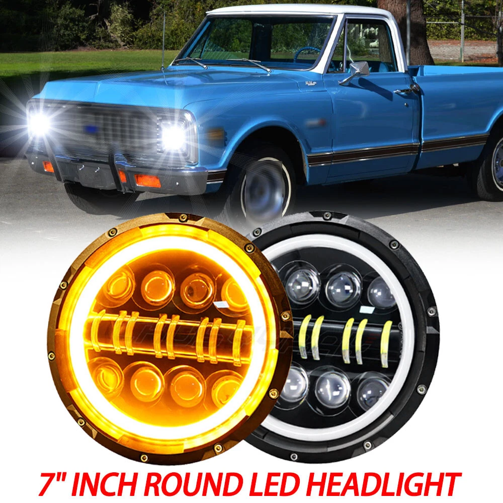 PAIR 7"inch Round LED Headlights High&Low Beam For Chevy C10 C20 Pickup Truck