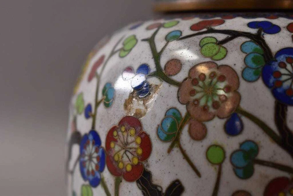 Product Details Size: 6"H Origin: China Circa: 1900-1940 Condition: LIDDED WITH FLORAL DECORATION. ONE JAR HAS SMALL CHIP TO SURFACE. UNMARKED. 6" H, The painting works are very detailed reflect the porcelain art of the Qing Dynasty. It is the truly stunning Chinese 19th/20th cloisonne jar that hardly find in this century. Don't miss it. All the items that we list are antique or vintage, they are second-hand and come with wear commensurate with age. commensurate with age see our photographs they tell more than the description. You will receive the exact item shown above. Every order is handled and packaged with EXTREME care. Shipping&Handling Selling to: Worldwide Shipping, Packing, Insurance & Handling: - USPS 48 continental states: buyer pays $45 - Other states (e.g., Hawaii, Alaska) and other countries: buyer to email seller for freight quote before placing an order. This item will be shipped via freight company with curbside delivery. Please include your contact phone number when specifying shipping instruction to speed up the process. The buyer also provides help unloading the item and move into the room at the destination. Should you need any additional service, such as lift gate service, inside delivery service, etc there will be additional charges applied. It is the Buyers responsibility to inspect the package before signing the delivery receipt. Make sure to mark the damage on the receipt in order to get reimbursement if any damage occurred. All items must be paid within 7 days after auction ends and to save shipping cost, we can combine multiple items for one low shipping charge (10% off on all additional items). In-store pick up for buyers near Los Angeles, CA is strongly encouraged and there will not be any charge. Payment Policy We accept PayPal for immediate shipment Orders will process by next business day after receiving payment. Non-Paying bidder will get a Negative feedback and reported to eBay!! Shipping and Handling charges will not be refunded for any reasons Cancellation Policy If the unit has already left our warehouse, there will be a charge of 25% purchase price. Seller's Right to Resell We remain the right to sell the unpaid item(s) 10 days after the auction/s are closed. Thank you for shopping with us.
