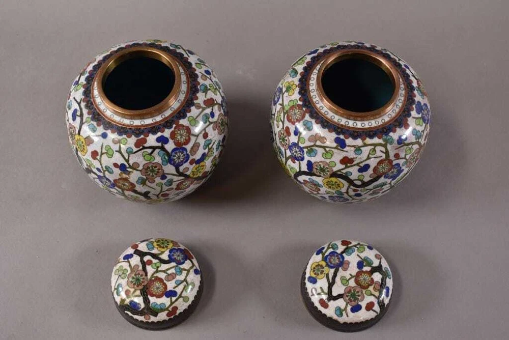 PAIR OF CHINESE CLOISONNE GINGER JARS