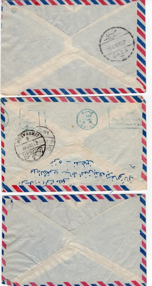 PALESTINE 1950 EGYPT GAZA ISSUES THREE CENSORED COVERS ONE TO JERUSALEM VIA CAIRO PLEASE VISIT MY EBAY STORE : Filatco Stamps BUY 5 ITEMS SHIPPING & REGISTRATION IS FREE INTERNATIONAL BUYERS PLEASE NOTE: EBAY AND PAYPAL REQUIRE REGISTRATION FOR TRACKING INTERNATIONAL SHIPMENTS. EBAY CHARGES $12.61 FOR SHIPPING LABELS WITH TRAKING # US POST OFFICE CHARGES $14.95 FOR REGISTRATION # + POSTAGE BUYER HAS THE CHOICE OF SHIPPING FIRST CLASS MAIL WITHOUT TRACKING # FOR $2.50 . IN THIS CASE BUYER ACCEPTS RESPONSIBILITY IF ITEM IS LOST IN TRANSIT. Feel free to ask if you have any questions. PAYMENT WITHIN 2 DAYS IS APPRECIATED . FEEDBACK : I APPRECIATE YOUR BUSINESS AND MY TOP CONCERN IS TO MAKE SURE YOU ARE 100% PLEASED WITH ANY ITEM YOU PURCHASE. IF YOU HAVE A CONCERN OR A PROBLEM WITH INVOICE, SHIPPING OR ANY ITEM YOU RECEIVED PLEASE CONTACT ME FIRST BEFORE YOU LEAVE ANY FEEDBACK. I GUARANTEE YOU WILL BE 100% SATISFIED WITH THE TRANSACTION. I WILL CERTAINLY LEAVE YOU A POSITIVE FEEDBACK AS SOON AS I RECEIVE YOURS.
