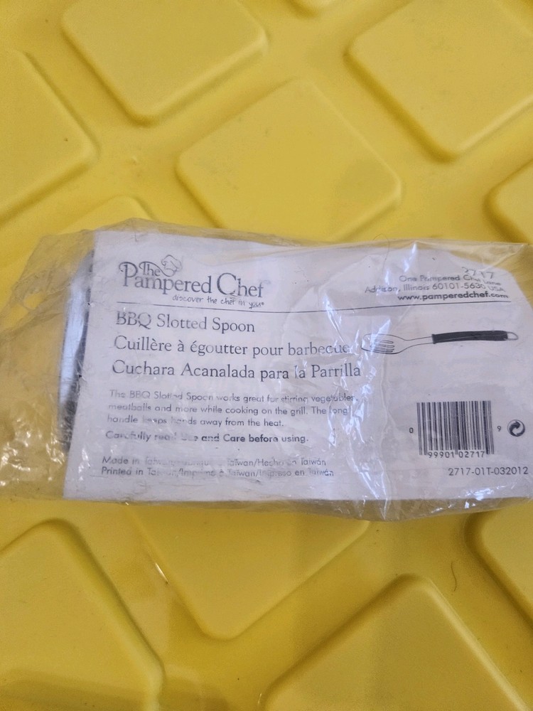 PAMPERED CHEF BBQ SLOTTED SPOON #2717 NEW IN PACKAGE