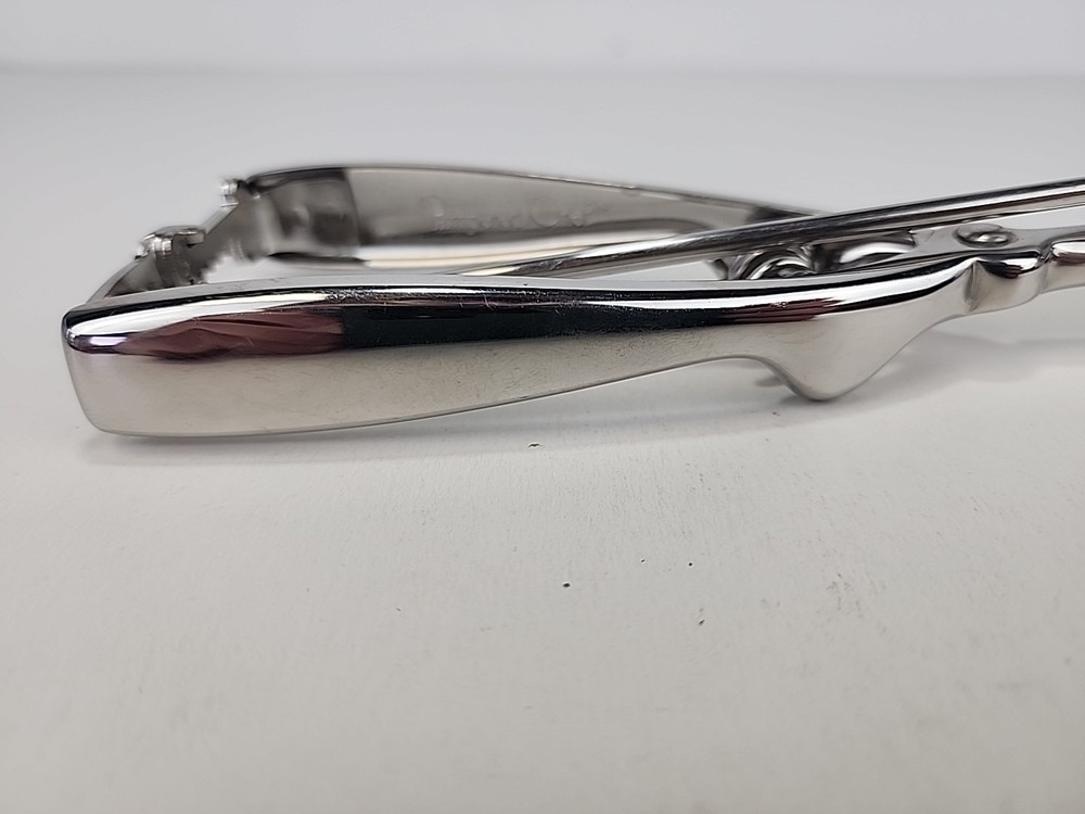 The PAMPERED CHEF INOX 18/8 Scoop Melon Baller/Ice Cream is a high-quality stainless steel tool designed for easily scooping and serving ice cream. With its sleek silver color and brand name reputation of Pampered Chef, this scoop melon baller is a stylish and durable addition to any kitchen tool collection. Perfect for creating perfectly shaped melon balls or elegant scoops of ice cream, this versatile gadget is a must-have for anyone looking to elevate their dessert game.