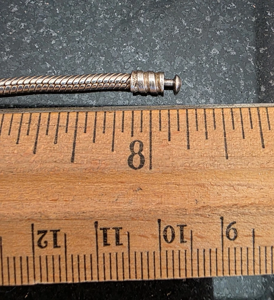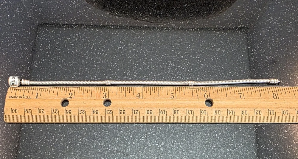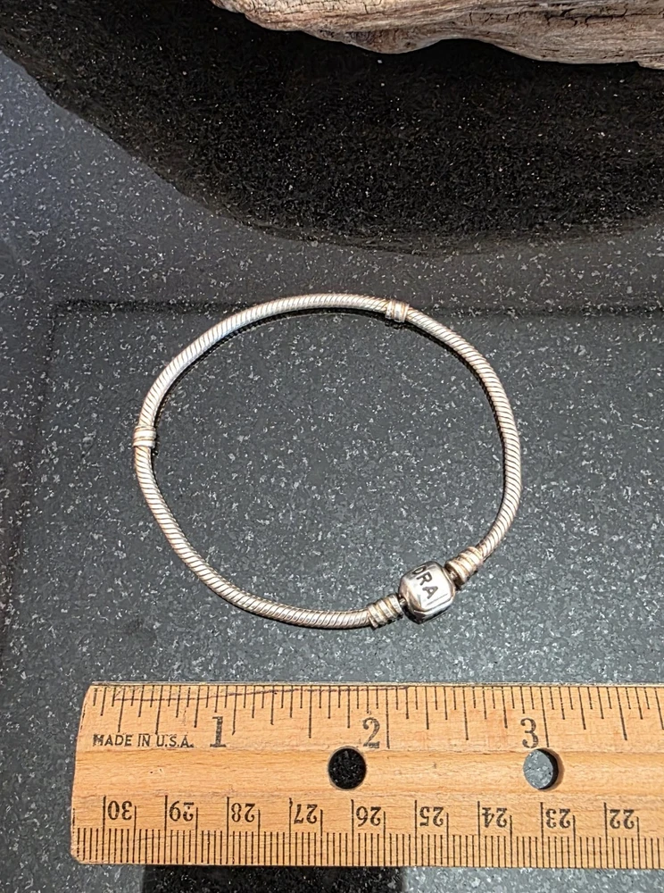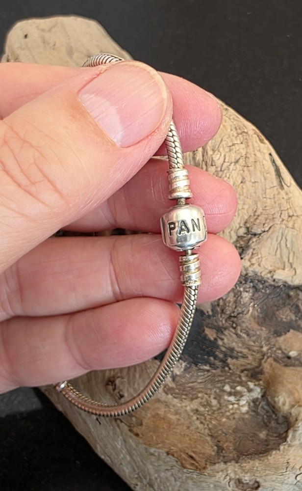 PANDORA 925 ALE 8 1/8" Snake Chain - No Crown (Pre-2008). Condition is Pre-owned and in very good condition. This was made prior to 2008 and will not have the crown above the O (see photo). I have included a photo with the instructions for opening the clasp on the snake bracelets (see photo). When buying a snake bracelet, keep in mind how many charms you plan on having on the chain. The more the charms, the bigger the bracelet you will need as the size of the charms will hold the chain further from your wrist. (For example -I have an almost fully loaded 8" Chain that fits my 6.75" wrist.) Please see all photos for item details and condition. Shipping USPS.