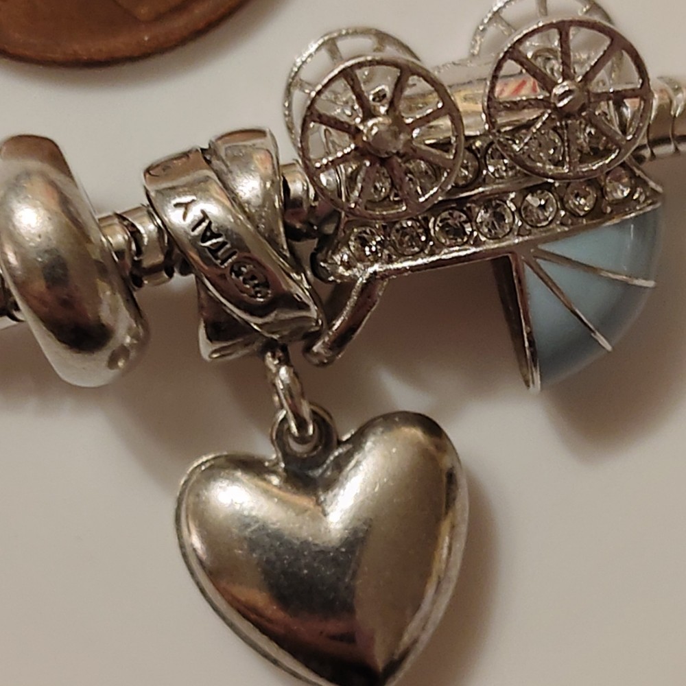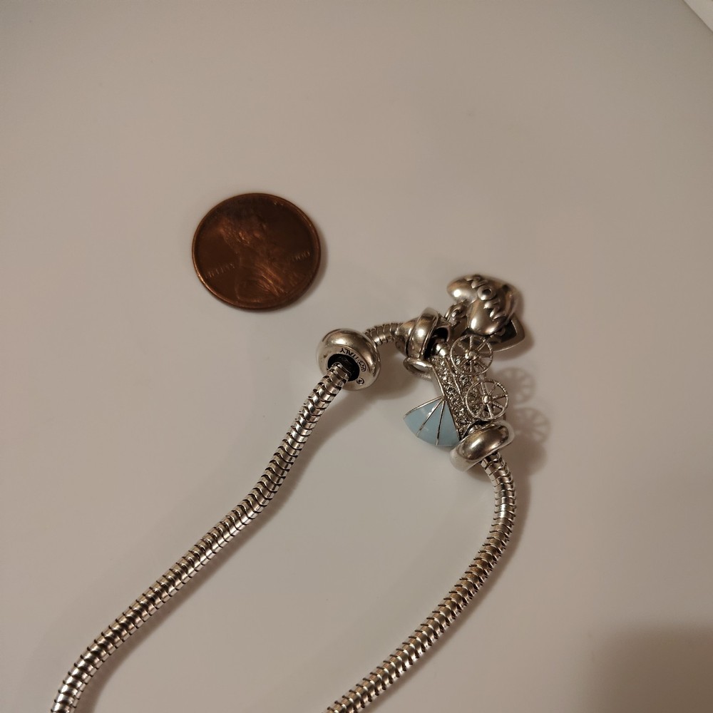 Crafted with precision, this PANDORA charm bracelet is a sterling example of elegance and personalization. The bracelet, stamped with a 925 mark, denotes its purity and fine craftsmanship. Accompanied by four charms, each with its own R.L 925 Italy stamp, the ensemble promises to be a timeless addition to your jewelry collection. With an item length of 8 inches, the bracelet offers a comfortable fit that complements any wrist size. The charm bracelet style allows for versatility and self-expression, making it an ideal gift or a cherished keepsake for yourself. The bracelet's authentic vintage appeal is a testament to its enduring allure.