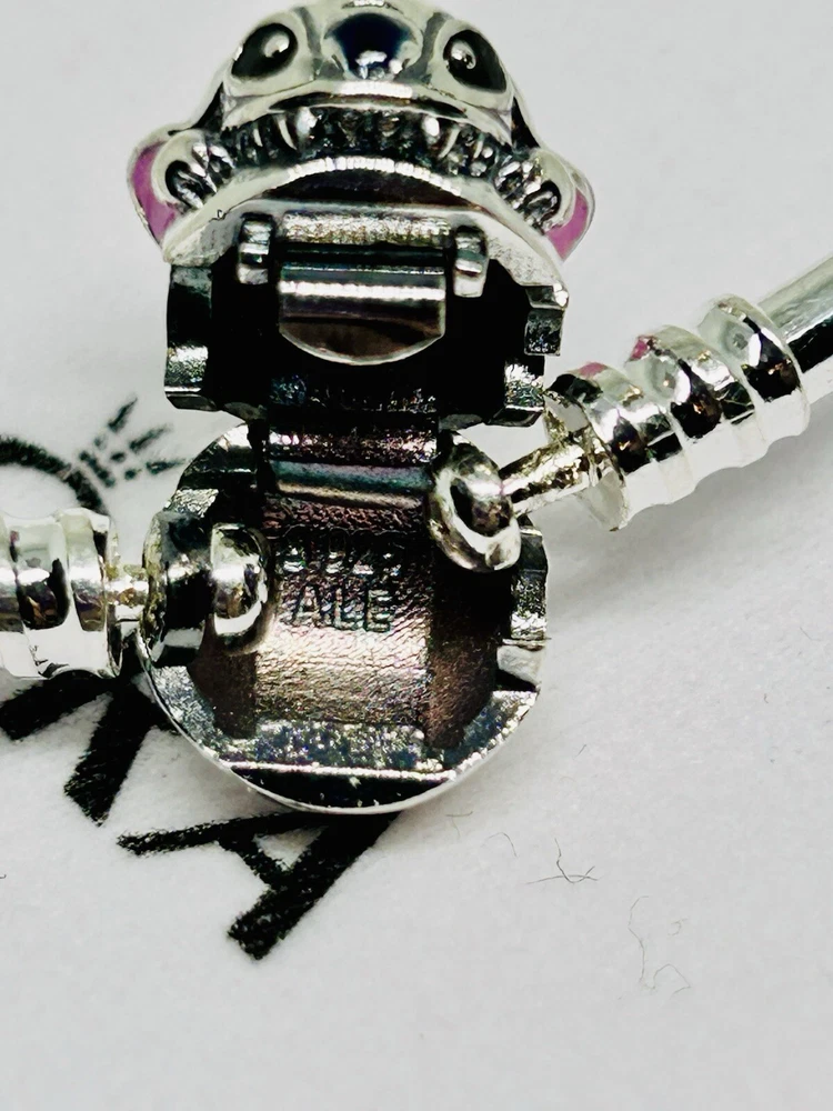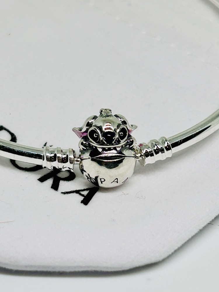 NEW PANDORA 591683C01 925 Silver Disney Stitch Biting Clasp Bangle Bracelet 17 cm Says “Love at first bite” S925 Sterling Silver ALE New with tag and dust bag