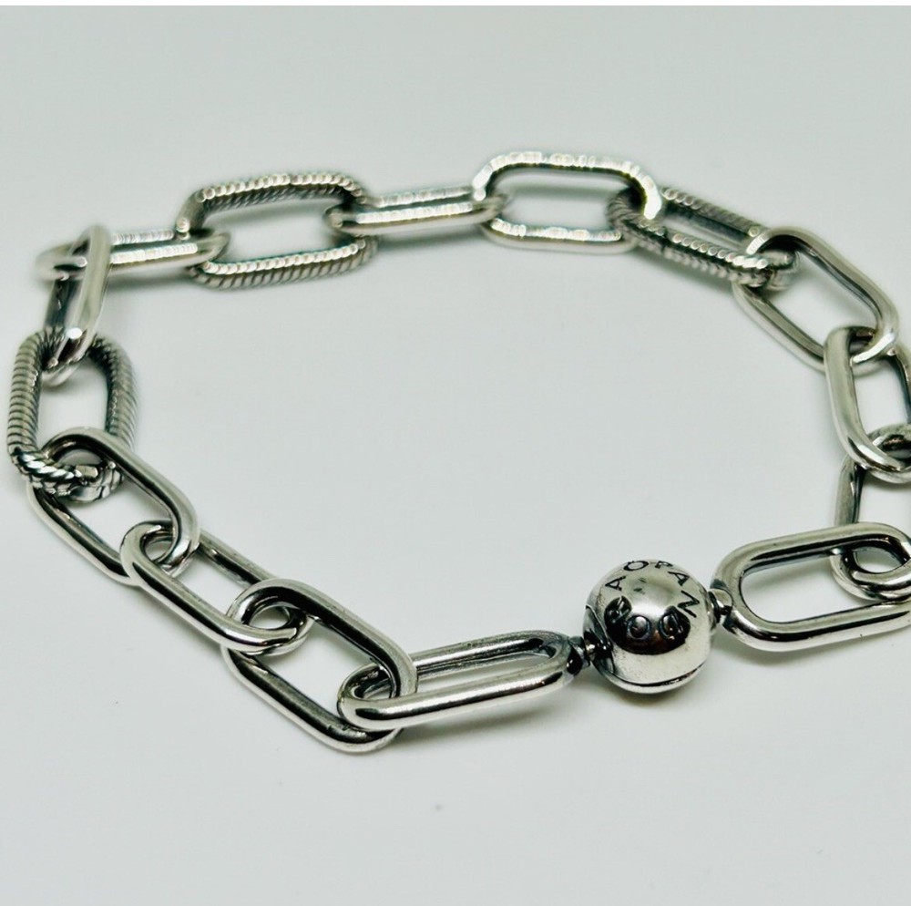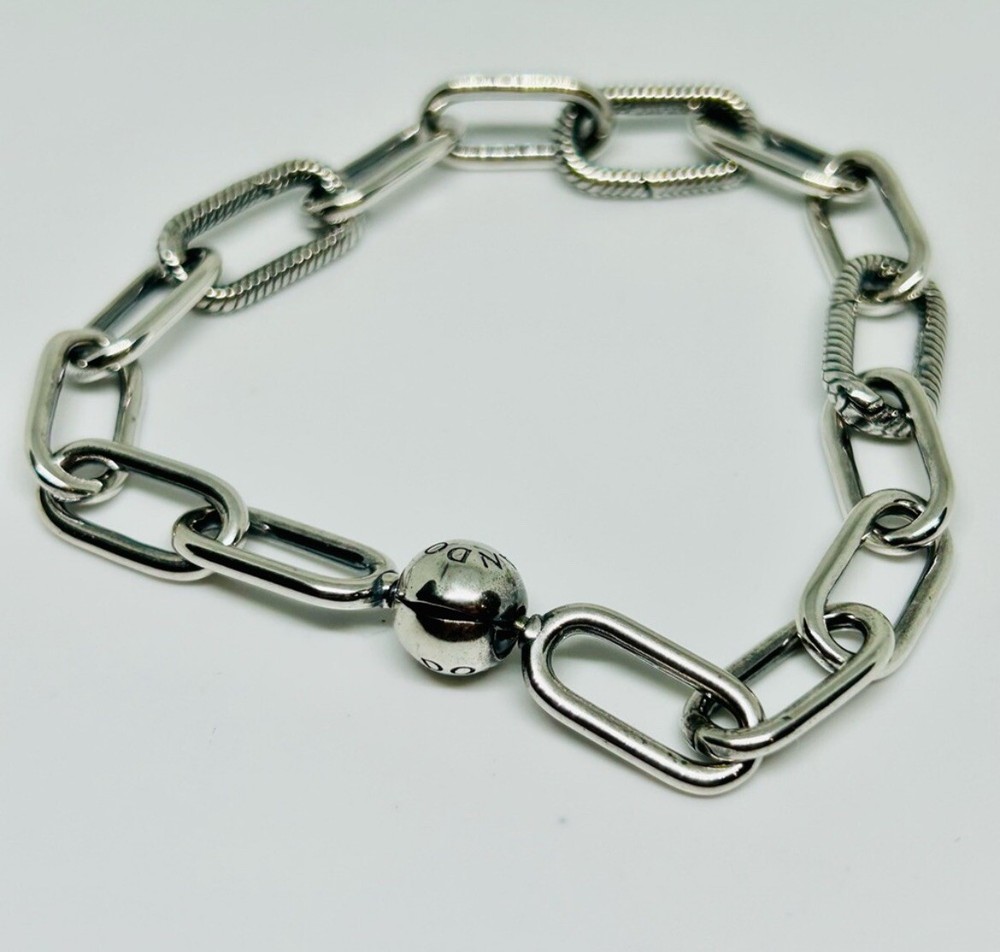 This beautiful PANDORA ME 925 Silver Link Chain Bracelet is the perfect accessory for any occasion. The bracelet is made of high-quality sterling silver with a lobster clasp or customized links closure. It measures 7.8 inches in length and will fit any Pandora Me charms. The bracelet is designed in a round shape with a link chain style. It is a perfect gift for Engagement, Mother's Day, Christmas, Graduation, Wedding, Anniversary, Birthday, Christening, and Valentine's Day. The bracelet is made in Thailand and is a trusted seller. The pictures are a big part of the description, please look at all of them.