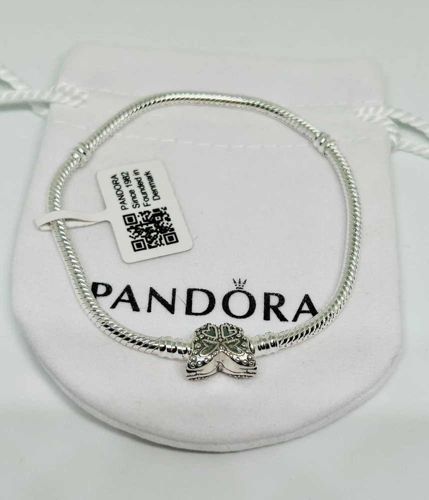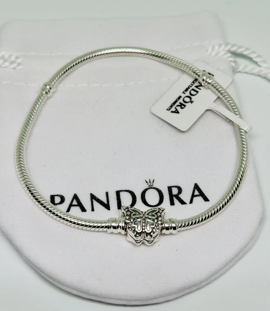 Elevate your jewelry collection with the elegant PANDORA Moments Butterfly Clasp Snake Chain Bracelet. Crafted from high-quality sterling silver and featuring a unique butterfly clasp, this bracelet is a versatile piece that complements any outfit. The clear cubic zirconia accents add a subtle sparkle, while the durable snake chain design ensures a comfortable fit and effortless style. Ideal for a range of special occasions from birthdays to weddings, this bracelet is a timeless gift or a cherished treat for yourself. The thoughtful design details, including the S925 ALE metal purity stamp and Thai craftsmanship, ensure that you're adding a piece that's both beautiful and built to last. Pictures are a big part of the listing, please look at all of them.