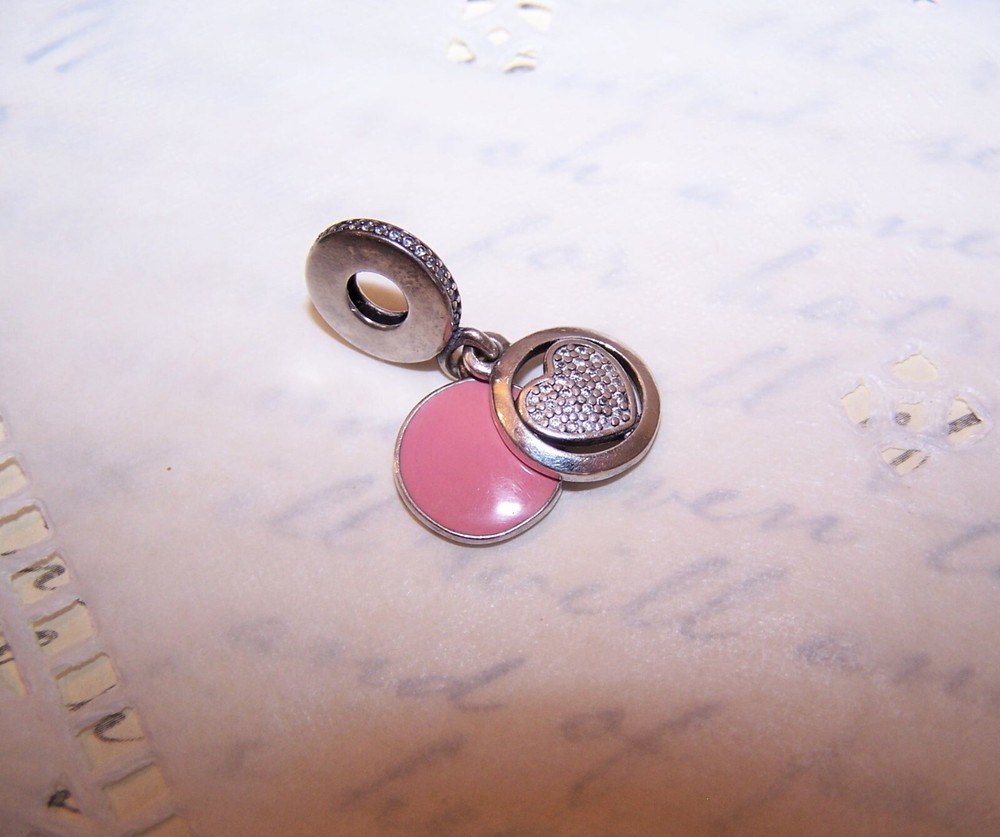 Vintage PANDORA Sterling Silver Pink Enamel Devoted Heart Dangle Charm - 792149EN Up for offer now: From PANDORA, a Sterling Silver and enamel dangle charm with clear cz accents on the top round. The charm has 2 drops - a pink enamel round (reverse reads You Make my Heart Smile) and a CZ round (with heart). First photo is a Pandora stock one, the rest are of the charm you will receive. Great condition. Guaranteed genuine - from a jeweler who went out of business. No box - no papers - you get just the charm. EBAY/Rob Postage quoted for this item on its own INCLUDES insurance. If purchasing more than 1 charm, just stack the orders up and don't pay when hitting CHECKOUT. I'll combine postage/insurance to the proper amount and send back a revised invoice. BUY IT NOW ! ! ! ******************************** TERMS ITEM CONDITION * I have been doing EBAY for 24 years now and I know what I am doing when it comes to selling. I describe my items accurately, have multiple pictures on each of my listings so a "surprise" upon receipt is unlikely. However, if something is amiss, I will remedy the situation as quickly as possible. RETURNS/REFUNDS * Any return is to be made within 3 days after Buyer's receipt of item. Please notify ME (not EBAY) asap if you intend on making a return. PAYMENT METHODS ACCEPTED * PayPal - Any refund made will be less the amount Paypal keeps as a transaction fee. (New as of 11/24/19). SALES TAX * EBAY now collects sales tax on most states - this will be automatically added to your invoice by EBAY. SHIPPING USA As mentioned in the shipping area. COMBINED SHIPPING Yes, I will combine shipping for the best price - just do not pay and let me correct the invoice. If you pay, I can no longer refund the overage. PACKAGING * I package my items very well for transit so please please do not worry - your package will arrive intact. My home is smoke and pet free! OVERSEAS SHIPPING * The USPS is starting to change overseas delivery rules once more so if you wish to purchase an item, please contact me before you do so so that I can give you an exemption of the listing. RIGHT TO SELL * I sell on other sites so if you try to find my listing and can't, it means it has sold. DELIVERY * I process mail 2 to 3 times a week so once payment is received, Buyer's package will ship ASAP - usually 1-2 days after payment is received. If there is a delay, I will let BUYER know. FINAL NOTE * EBAY now processes all refunds so if you wish to make a return, just contact them to start the process. Thanks for visiting!