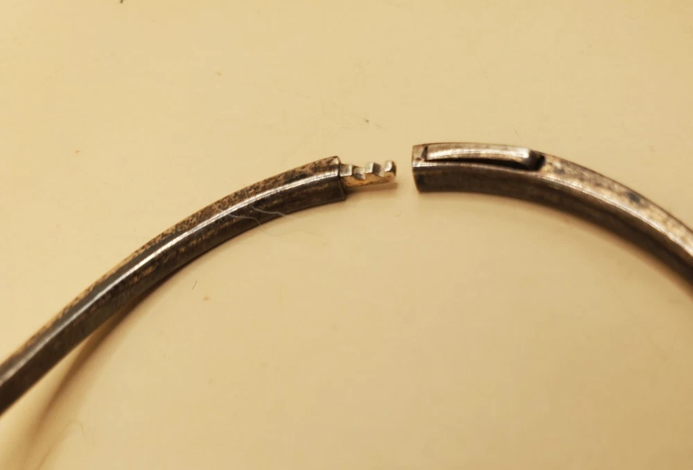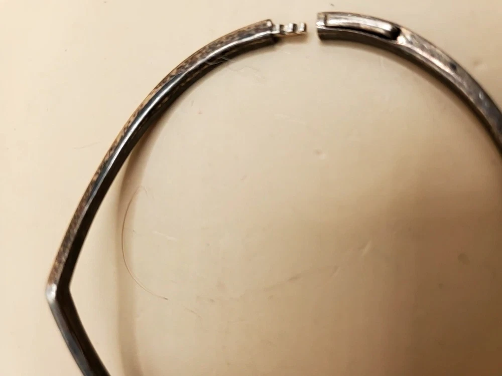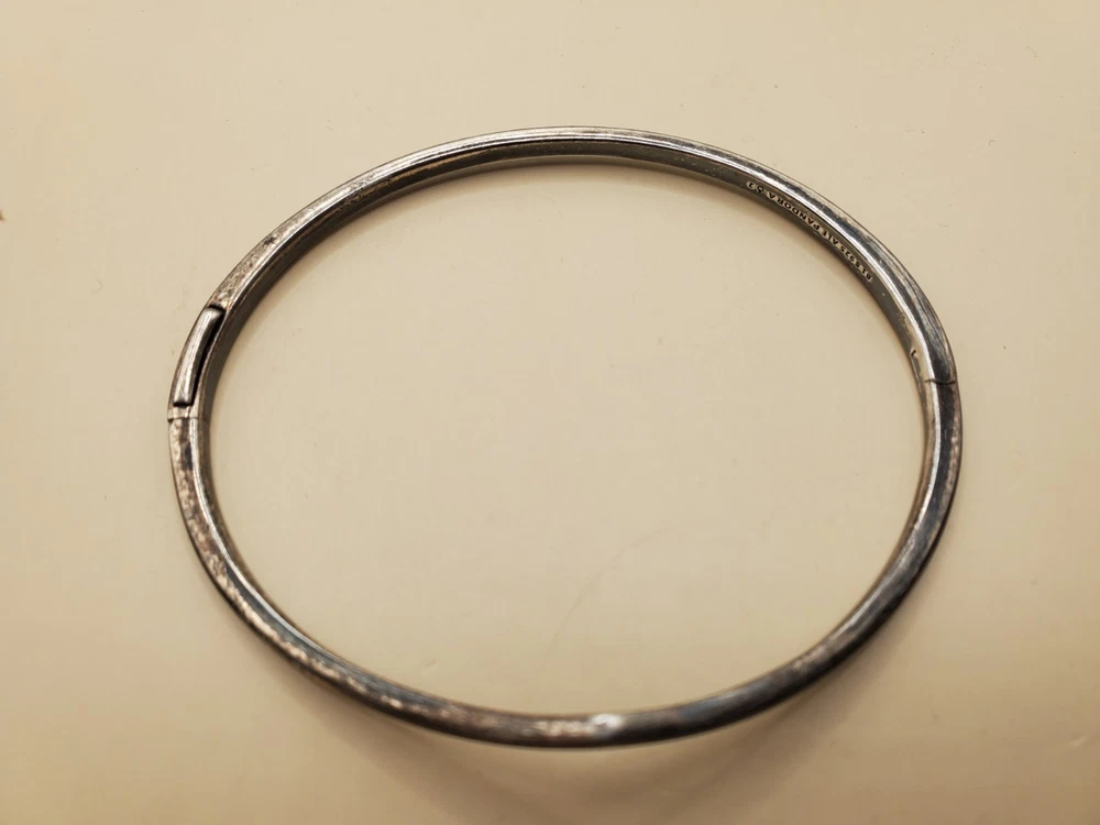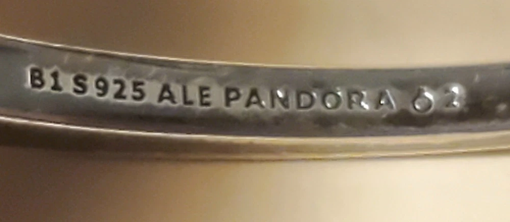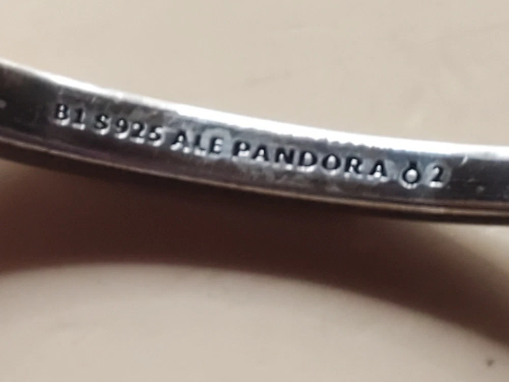 This sterling silver PANDORA bracelet is a must-have for any jewelry lover. The inside of bracelet is signed B1 S 925 ALE PANDORA, ensuring its authenticity. The bracelet weighs 11.1 grams and is 2.6mm wide. There is patina on the silver due to age, which adds a touch of vintage charm. I have not attempted to clean or polish the outside of bracelet, I leave that decision uo to the buyer. I did use a silver polishing cloth on inside of bracelet where signature is so I could read it better. That area did shine up nicely. The 2nd to last photo shows the signature prior to polishing and last photo is after polishing signature area. The hinged closure with latch ensures that this bracelet will stay securely on your wrist. The latch is on underside of bracelet and works well. The PANDORA brand is well-known for their high-quality jewelry pieces. Please see all photos.