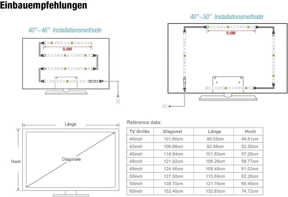 PANGTON VILLA Led Strip Lights 8.2ft for 8.2 ft, RGB (Red, Green, Blue) Product Details Is Discontinued By Manufacturer : No Product Dimensions : 6.5 x 4.05 x 0.67 inches; 3.52 ounces Item model number : EK-40-60 Batteries : 1 Lithium Metal batteries required. (included) Manufacturer : Pangton Villa Color: RGB (Red, Green, Blue) Brand: PANGTON VILLA Indoor/Outdoor Usage: Indoor Special Feature: Indoor decorations, rgb led Light Source Type: LED Power Source: usb Light Color: Blue Theme: Tv Occasion: Christmas Style: Modern Light up every side of your tv - 98.4in / 2.5m 5050 led light strip for 40-60 inch tv Led tv lights can improve image clarity 24 key remote:16 color, dimmable 4 modes. Control distance 19. 6Ft-26. 2ft Install procedure-double sided adhesive tape Installation, we made the mark on the light strip, just connected it according to the mark Working voltage: The product is powered by dc 5v tv usb interface. PANGTON VILLA Led Strip Lights 6.56ft for 40-60in TV USB Backlight Kit with Remote-16 Color 5050 HDTV Bias Lighting