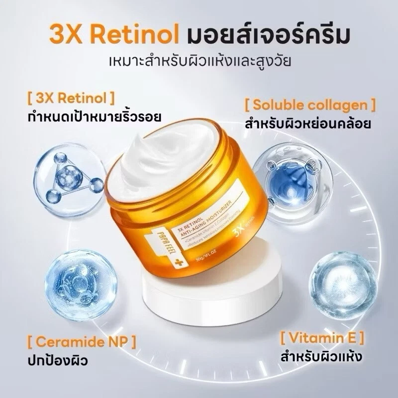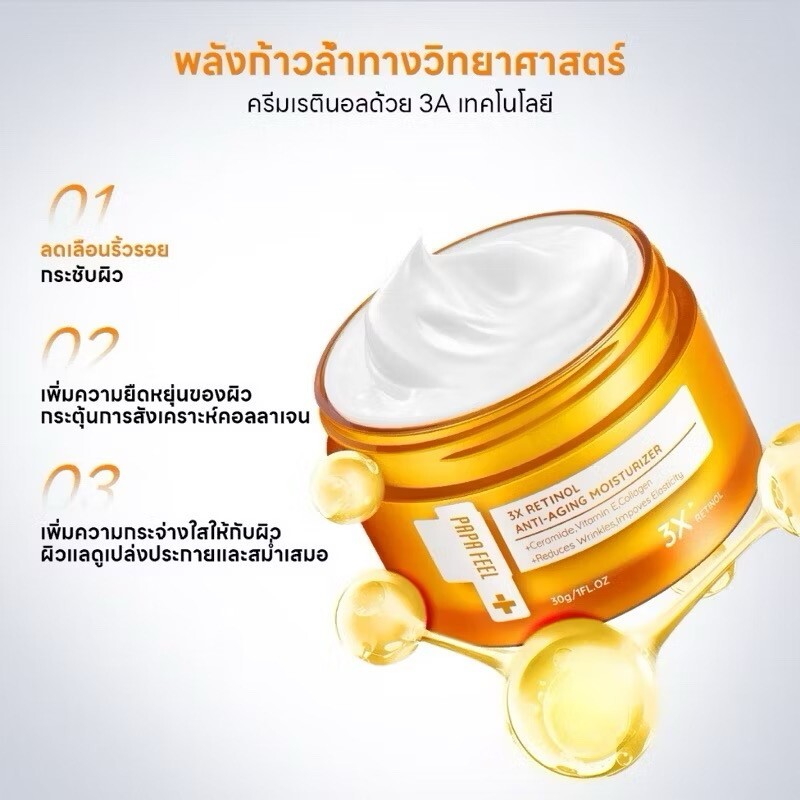 Expiration Date: 2 Years after MFG Type: Moisturizer Department: Unisex Skin Type: All Skin Types Country/Region of Manufacture: Thailand Features: Oil-Free gtin13: Does not apply Size: Regular Main Purpose: Age-Defying, Dark Spots, Firming, Hydration, Lifting, Lightening, Product Line: PAPA FEEL Retinol Anti-Aging Cream Set Includes: Brightener UPC: Does not apply Volume: 30g Scent: Neutral Active Ingredients: Alcohol-Free, Dye-Free, Non-Comedogenic Body Area: Face Period After Opening (PAO): 12M California Prop 65 Warning: n/a Brand: PAPA FEEL MPN: Does not apply Formulation: Cream Ingredients: Hyaluronic Acid, 3x Retinol, Soluble collagen, Ceramide NP, Vitam Sun Protection Factor (SPF): SPF0 UVA Protection: n/a