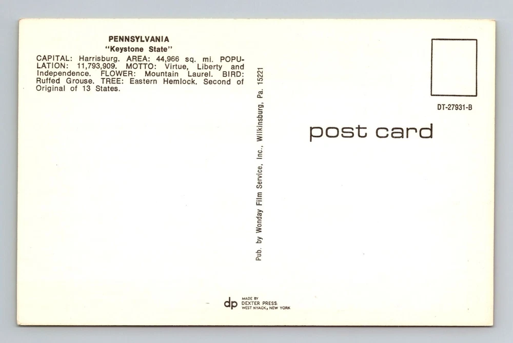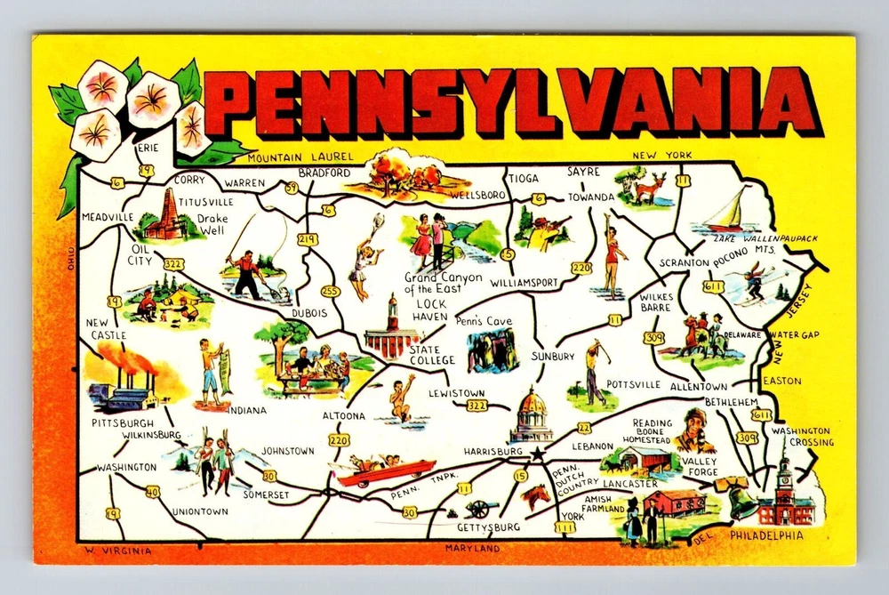 PA-Pennsylvania, Keystone State Map, Points Of Interest, Vintage Postcard