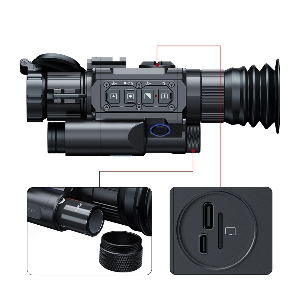 NV008SP2-LRF is an advanced digital night vision scope that builds upon the stable advantages of the NV008 series. It features a cutting-edge ultra-low-illumination 4 million (2688*1520) high-sensitivity sensor, providing superior image and video with enhanced clarity and detail. Combined a 1200yd LRF module, it enables precise ranging for accurate ballistic calculations and precise hits on targets. Furthermore, the device features a compact and ergonomic design, providing excellent portability. With its impressive 6000J impact resistance and IP67 protection rating, it ensures durability and reliable performance. Equipped with a rechargeable 18650 lithium battery, it offers convenience, ease of use, and long-lasting operation. Key features ⚫ Ultra-low illumination 4 million (2688*1520) CMOS sensor ⚫ 1440*1080 high-contrast AMOLED screen ⚫ Ballistic calculator ⚫ 1200yd/1000m LRF ⚫ Visible Light Enhancement Algorithm (VLEA) ⚫ Adjustable beam IR illuminator with a range of 350m ⚫ Recoil-activated recording ⚫ Upgraded UI design ⚫ WiFi ⚫ IP67 weatherproof rating ⚫ 6000J recoil resistance