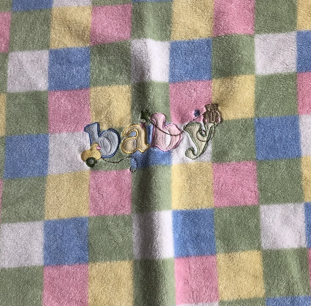 Parents Choice Pastel Squares Baby Blanket Pink Green Yellow Blue Duck Bear. Item will ship in poly mailer via USPS Ground Advantage Mail.
