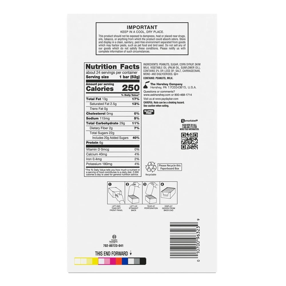 Product - PAYDAY Peanut Caramel Candy, 1.85 oz., 24 pk. Flip Craft | USA About Us Add Us Feedback PAYDAY Peanut Caramel Candy, 1.85 oz., 24 pk. Introduction Enjoy the classic PAYDAY taste with this convenient 24-pack of 1.85 oz Peanut Caramel Candies. Each bar features crunchy peanuts enrobed in rich caramel for a satisfying snack or treat. Perfect for sharing, gifting, or indulging anytime. Specifications Brand PAYDAY Flavor Peanut Caramel Size 1.85 oz each Count 24 Bars Type Candy Bar Packaging Boxed Pack Allergen Contains Peanuts Key Features Crunchy peanut clusters in every bar Rich, chewy caramel coating Convenient 24-count pack Great for sharing & gifting Ideal on-the-go snack Why Choose Us? Authentic PAYDAY brand quality Bulk savings on favorite candy bars Fast & Free Shipping Reliable customer support Delivery Options Free Shipping We ship via USPS, UPS, or FedEx with tracking for 2–5 day delivery. USPS 3–5 days UPS 2–4 days FedEx 2–4 days Payments Returns Feedback Payment Methods PayPal, Visa, MasterCard, AmEx, Discover. Complete payment within 3 business days. Easy Returns Return unopened for a full refund within 30 days. Your Feedback Matters! Contact us with any issue; we aim for 5-star satisfaction. About Us Flip Craft delivers innovation and comfort through quality-focused products designed to exceed expectations. Useful Links About Us Add Us Feedback © Flip Craft | Designed by Huz