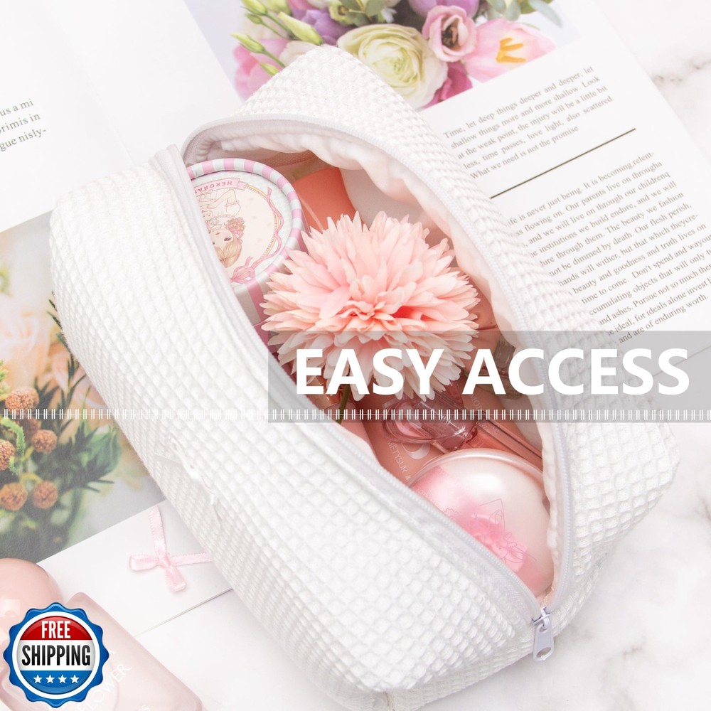 PAZIMIIK Cozy Makeup Bag Travel Cosmetic Bag for Women Soft Toiletry Bag Aesthetic Makeup Organizer Portable Large Zipper Pouch for Skincare Beauty Accessories Brushes Waffle Check White Features Spacious & Well-Organized: Designed for efficient storage of makeup brushes, pencils, and beauty accessories, this 8.2 x 4.2 x 3.5-inch makeup bag offers plenty of room for cosmetics, skincare, and toiletries while staying compact for travel. Structured & Stand-Up Design: Built to maintain its shape, this cosmetic organizer stands upright for quick and hassle-free access to your beauty products. Lightweight & Travel-Friendly: Soft and easy to carry, this portable makeup pouch is perfect for travel, everyday use, or keeping essentials organized on the go. Versatile for Multiple Uses: Ideal for makeup storage, skincare, accessories, and toiletries, making it a practical travel bag or vanity pouch. Great Gift Choice: A stylish and functional beauty bag that makes a thoughtful gift for women, teens, and makeup lovers for birthdays, holidays, or everyday use. Shipping Free & Fast Shipping: We offer free shipping to most of the USA with a normal delivery time of 3-7 days. However, due to the current situation, additional delivery time (up to 3 weeks) may be required for some items. Alternative Carriers: We may use alternative carriers (e.g., USPS, FedEx, UPS) to ensure your package arrives safely and on time. Due to the use of multiple carriers, we are unable to provide a tracking number automatically. Handling Time: Orders are processed and shipped within 1-2 business days of receiving cleared payment. Shipping Restrictions: Shipping to Alaska, Hawaii, Puerto Rico, Guam, and other US territories may incur shipping charges or delivery restrictions. Please contact us before ordering, or your order can be refunded/cancelled. State Restrictions: Certain items may not be shipped to California due to state regulations. Contact for Tracking Updates: If you require tracking updates or have any concerns about the delivery of your order, please feel free to contact us, and we will be happy to assist you. Return Policy 30-Day Hassle-Free Returns: If you are not completely satisfied with your purchase, you can return the item for free within 30 days of receiving it for a full refund or exchange. Easy Return Process: Contact us, and we will provide you with a prepaid return shipping label and detailed instructions. No Restocking Fee: There are no restocking fees for returns. However, the buyer is responsible for return shipping costs if the return is not due to a seller"s error. Refund Processing: Refunds will be processed within 1 business day of receiving the returned item in its original condition. Feedback Your feedback is extremely important to us. We strive to provide the best products and customer service possible. If you are satisfied with your purchase, please take a moment to leave us a positive review. If you have any concerns or issues with your order, please contact us before leaving negative feedback. We are committed to resolving any problems and ensuring your satisfaction. Contact Us If you have any questions or concerns, please feel free to reach out to our customer support team. You can contact us through the eBay messaging system. We are available Monday to Friday, 9:00 am to 5:00 pm EST, and we will do our best to respond to your inquiry within 24 hours. Thank you for supporting our small family business!